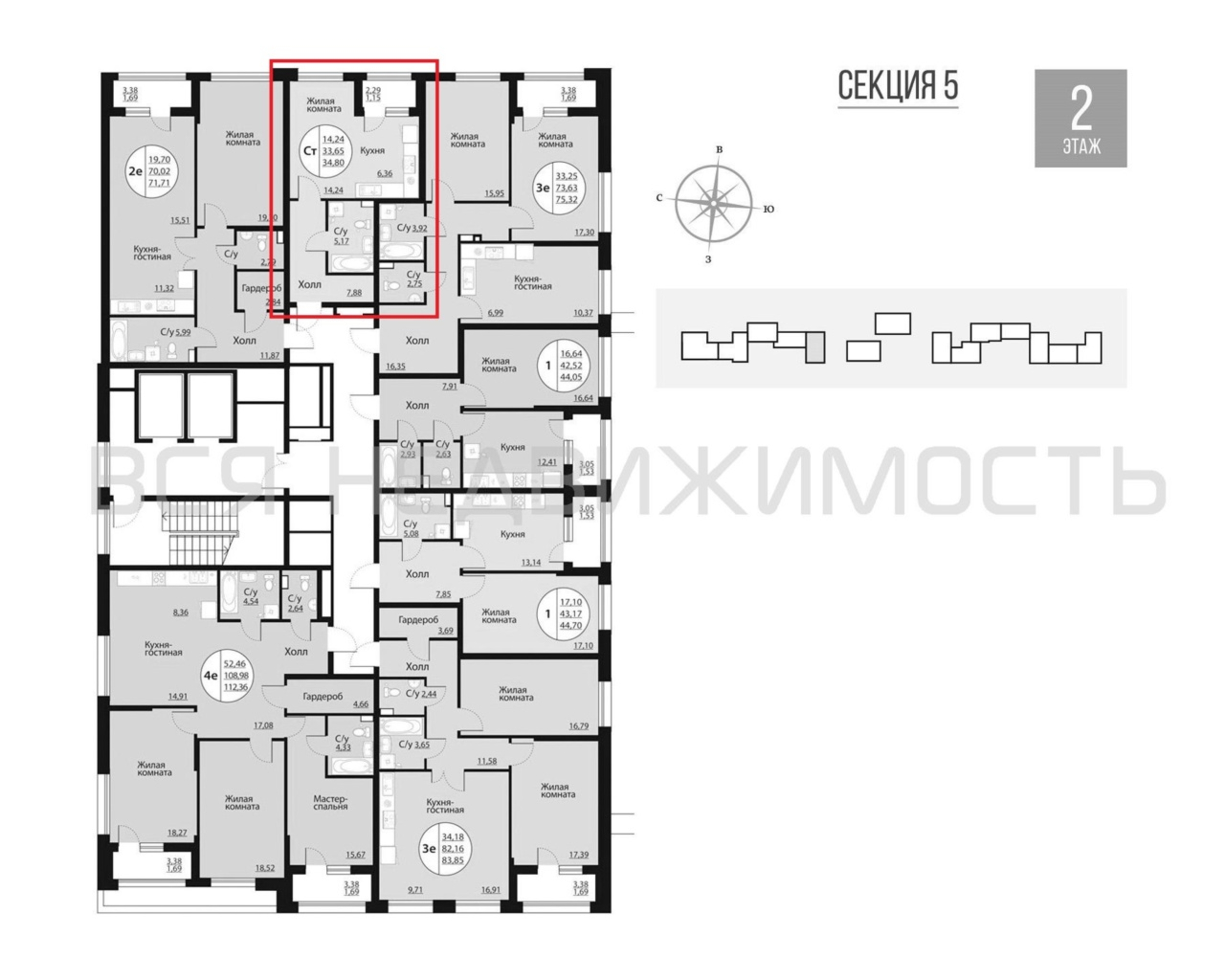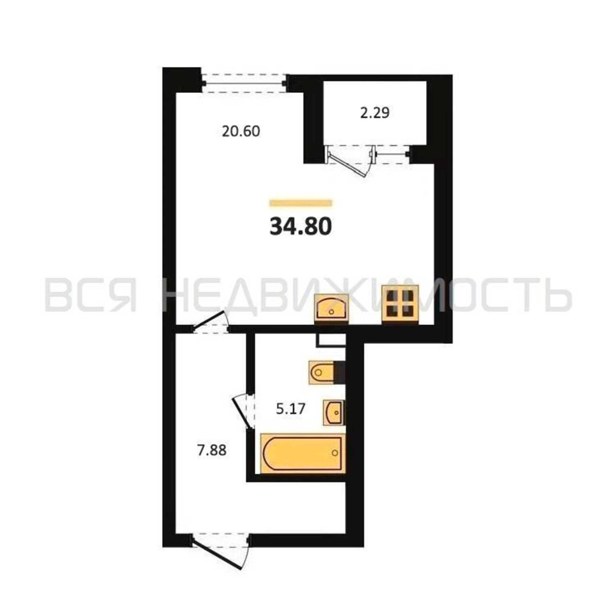 Квартиры-студии, 34.80 м² 2/16 этаж ID объекта 100093859