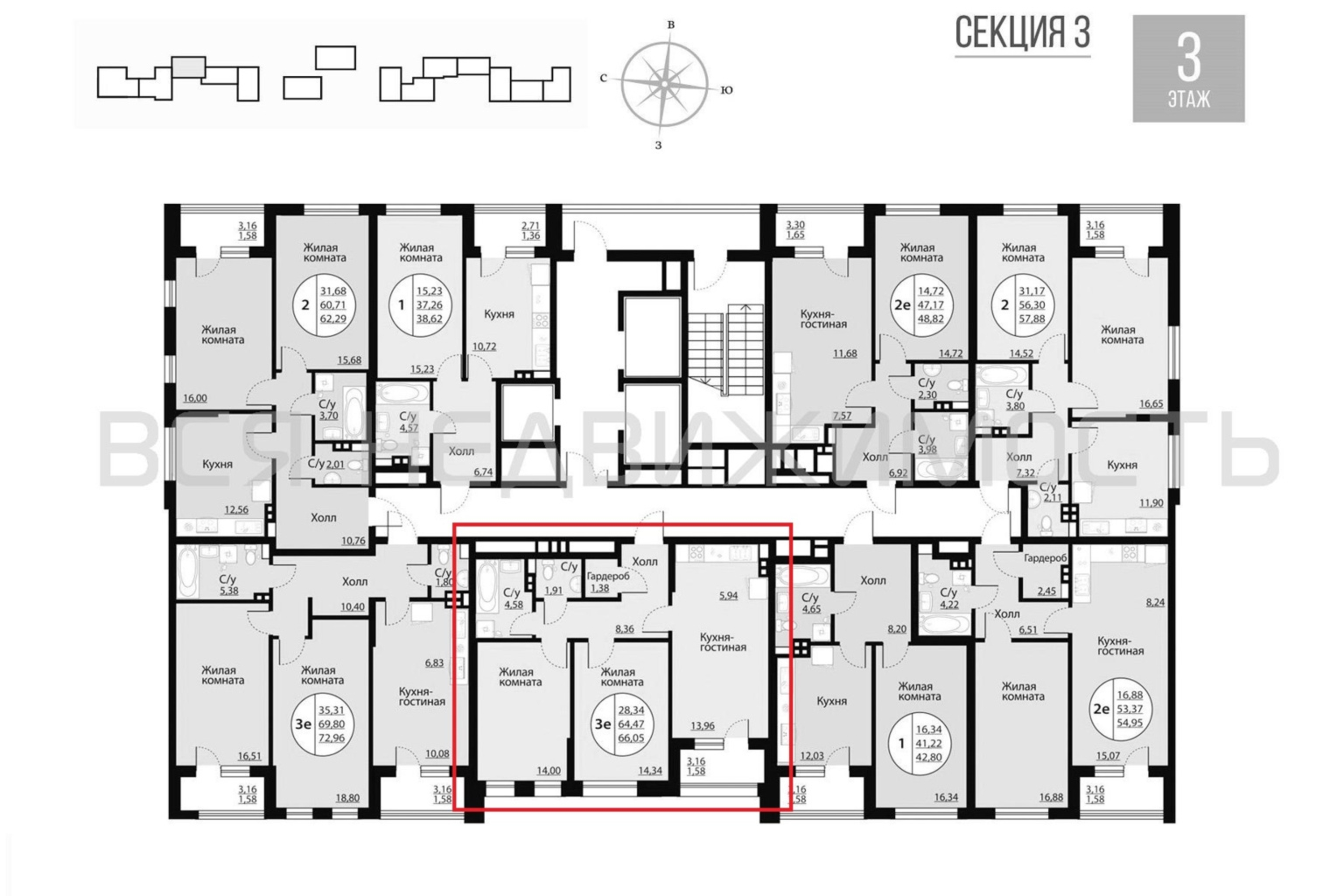 2-комнатная квартира, 66.05 м² 3/20 этаж ID объекта 100093879