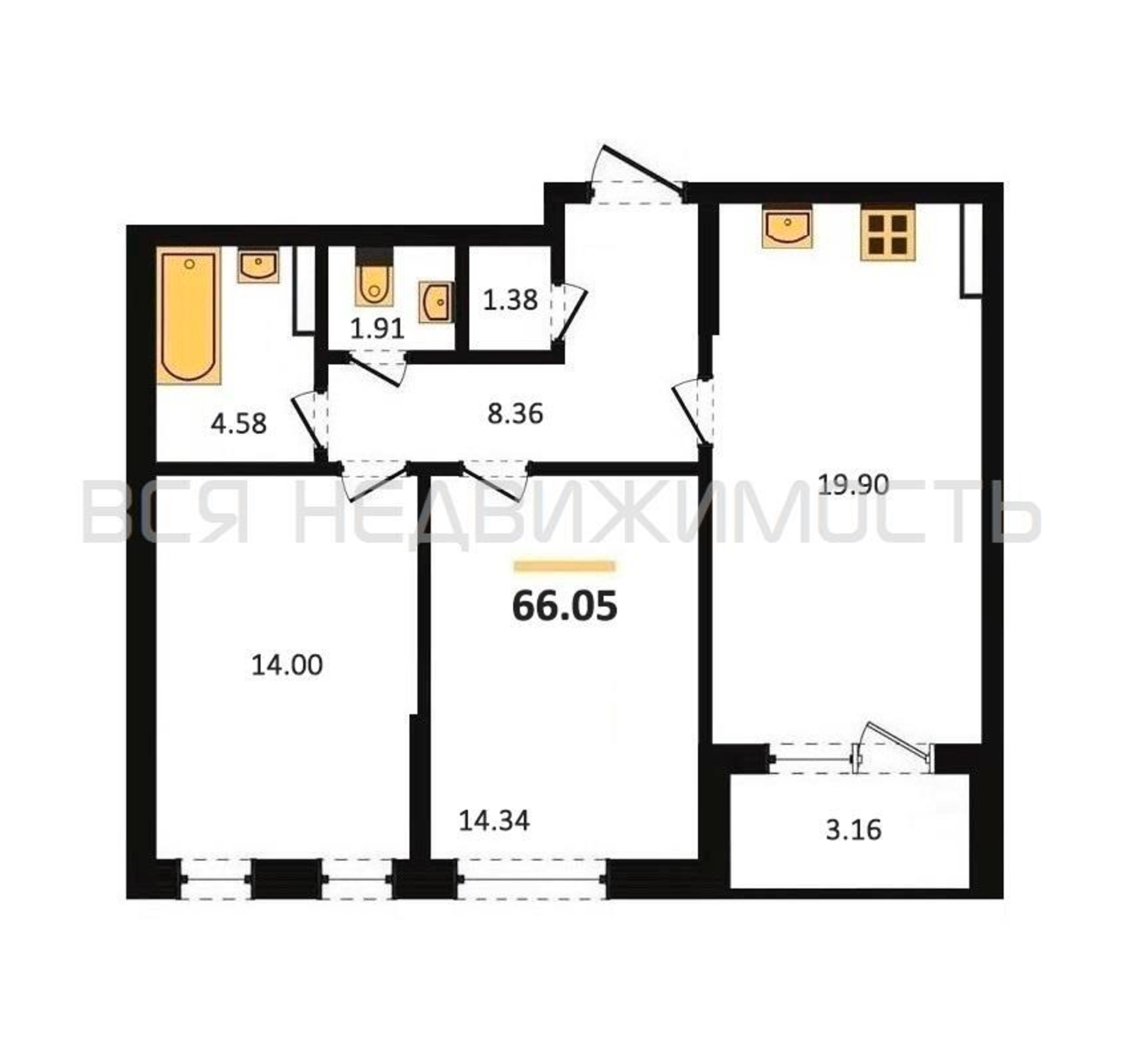 Строительная площадь66.05 м²