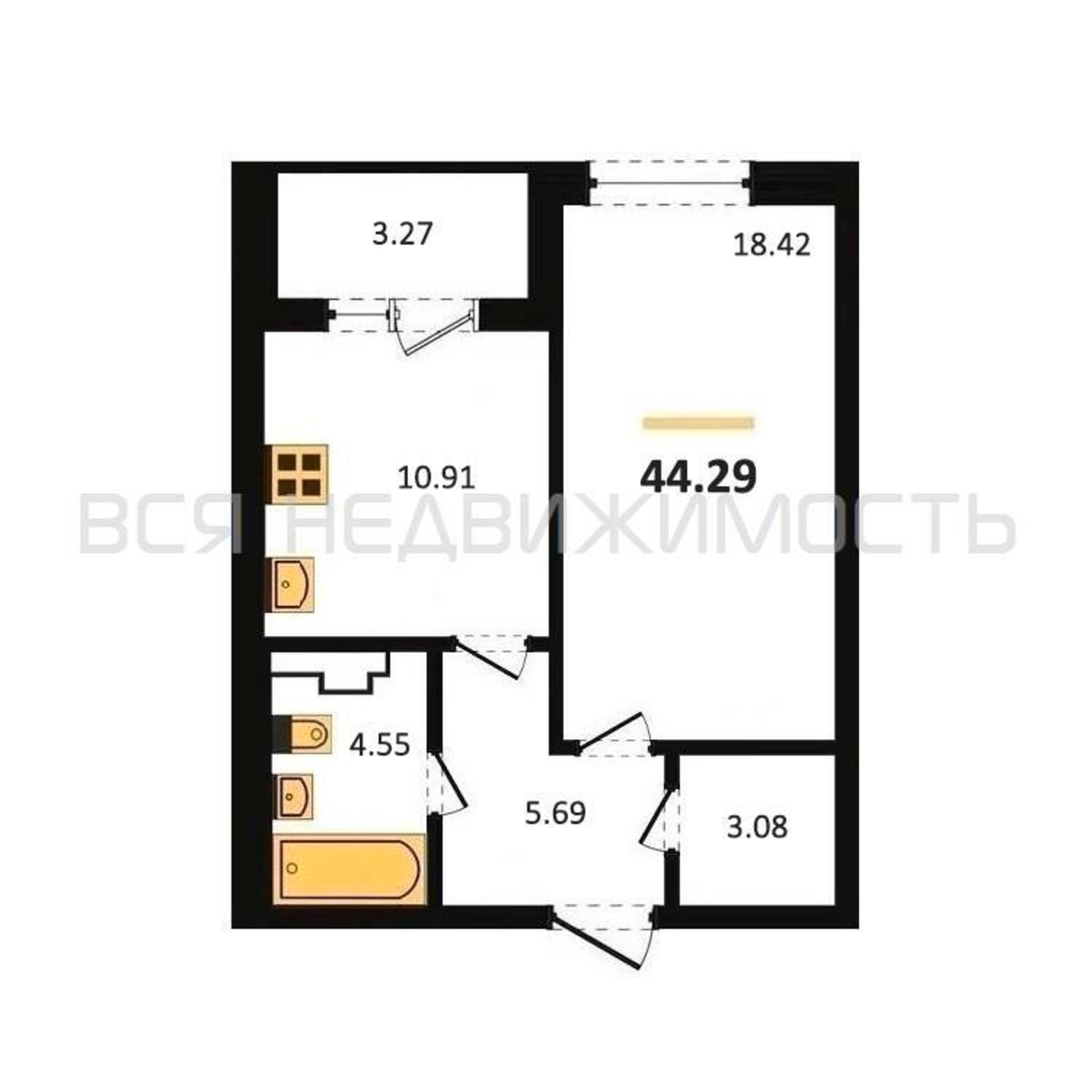 1-комнатная квартира, 44.29 м² 6/14 этаж ID объекта 100093902
