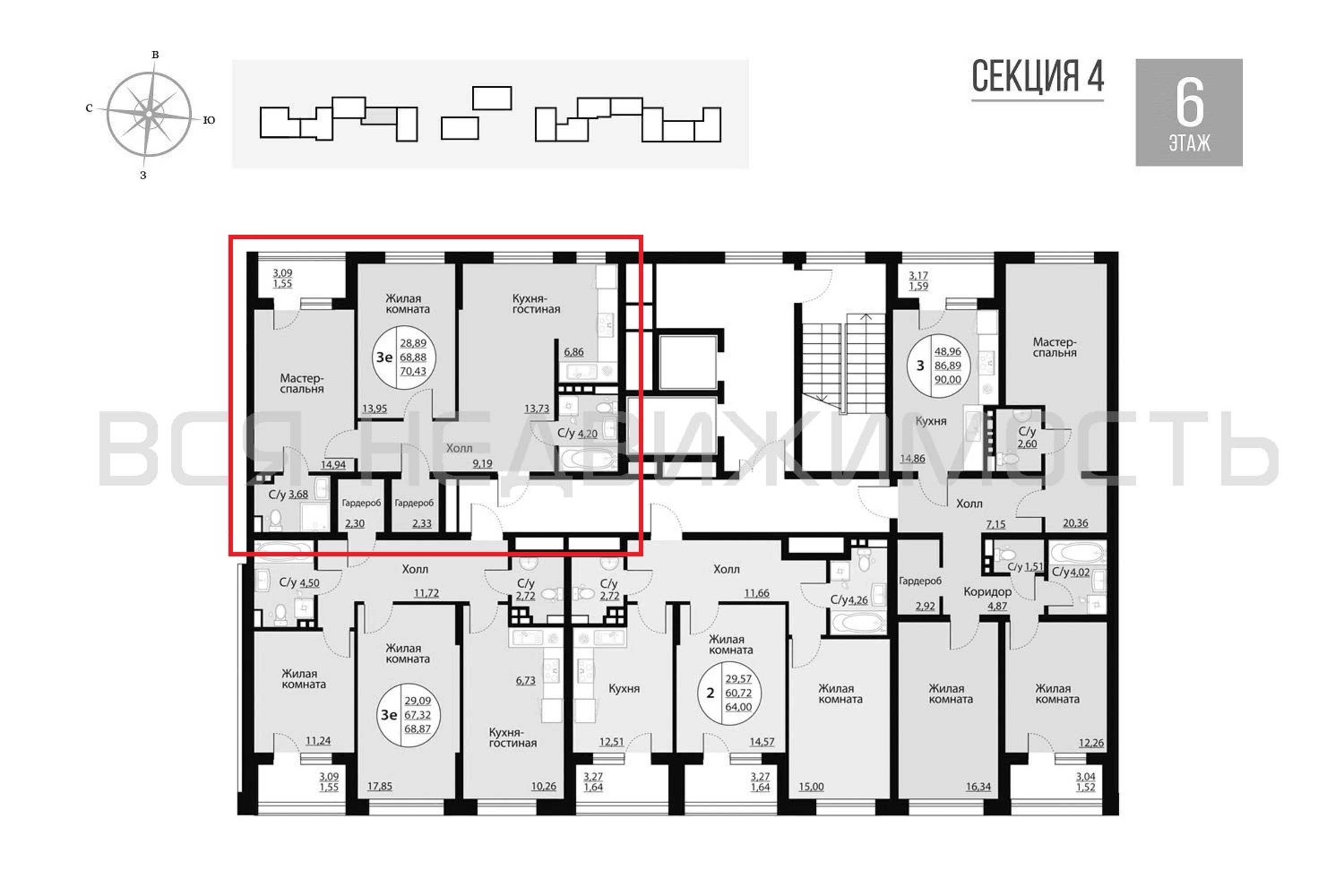 Общая площадь68.88 м²