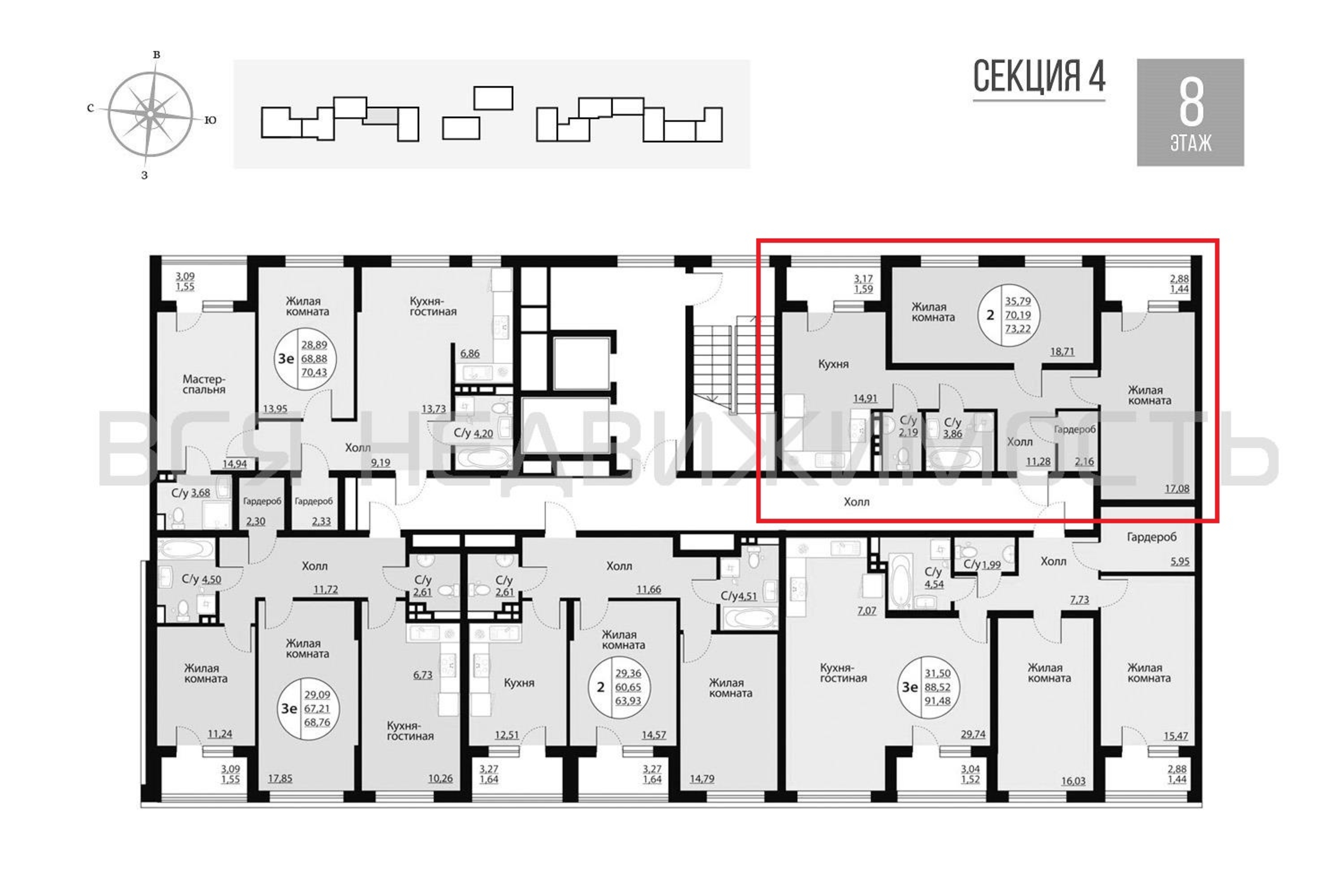 2-комнатная квартира, 73.22 м² 8/9 этаж ID объекта 100093916