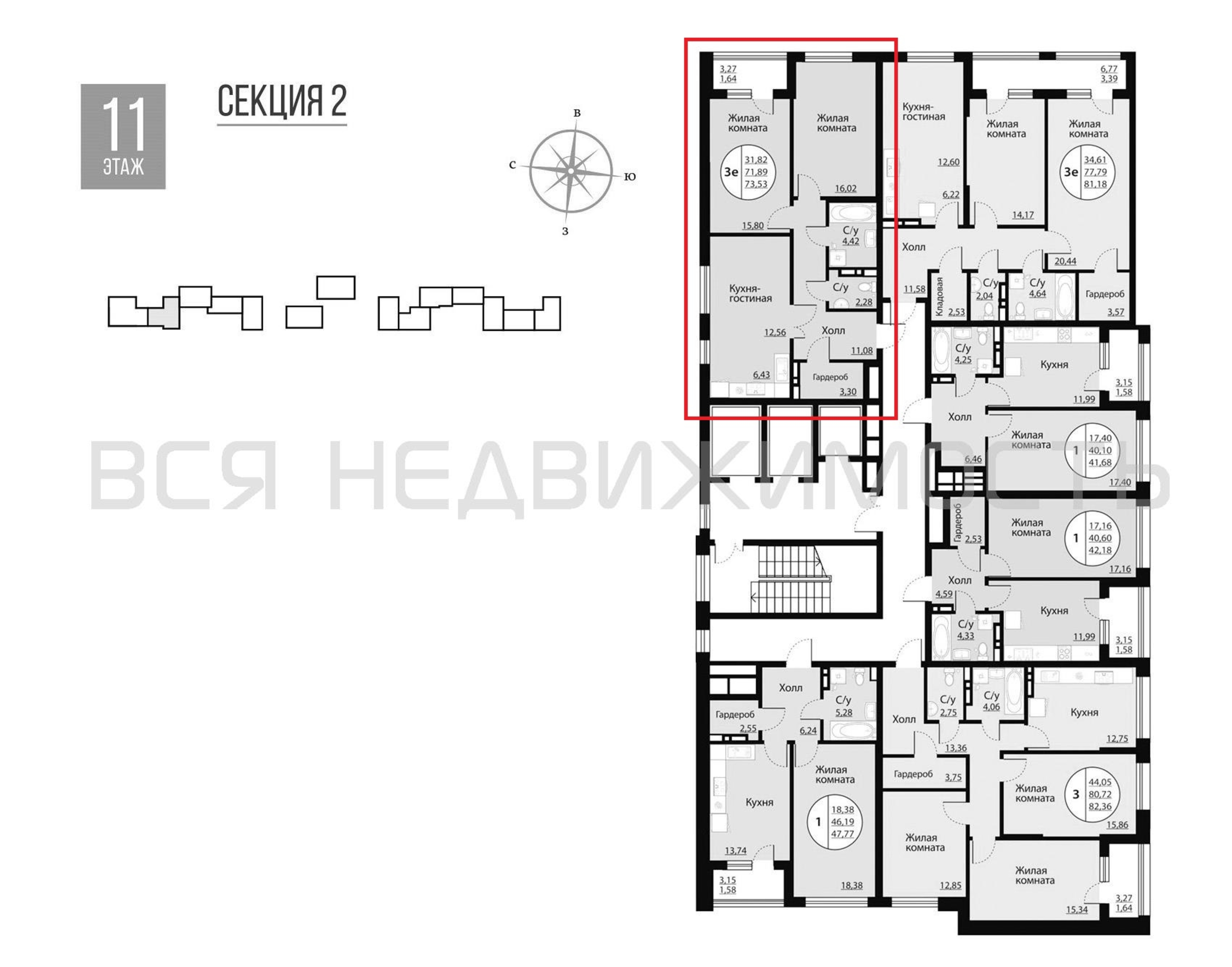 2-комнатная квартира, 73.53 м² 11/14 этаж ID объекта 100093950
