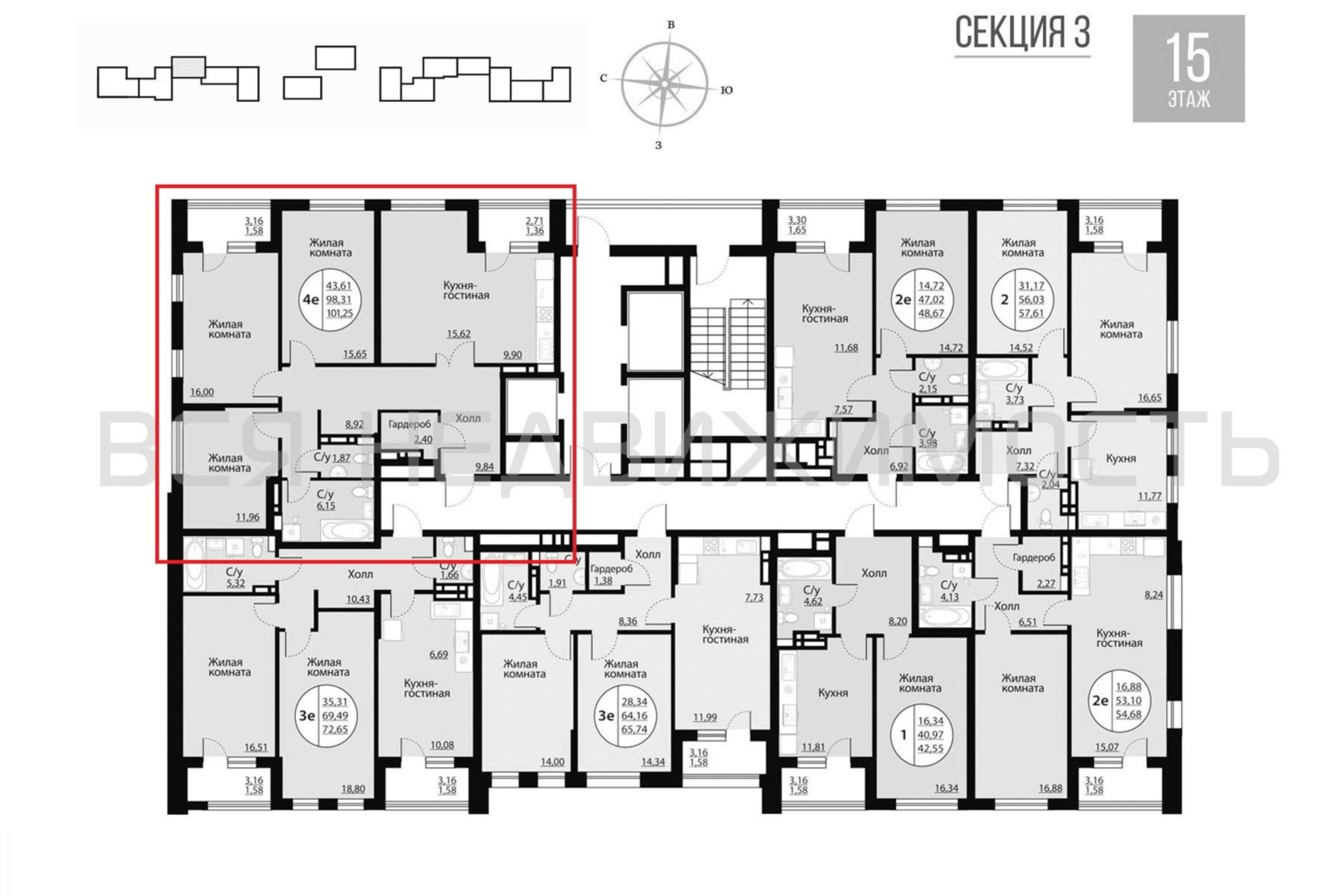 3-комнатная квартира, 101.25 м² 15/20 этаж ID объекта 100093971