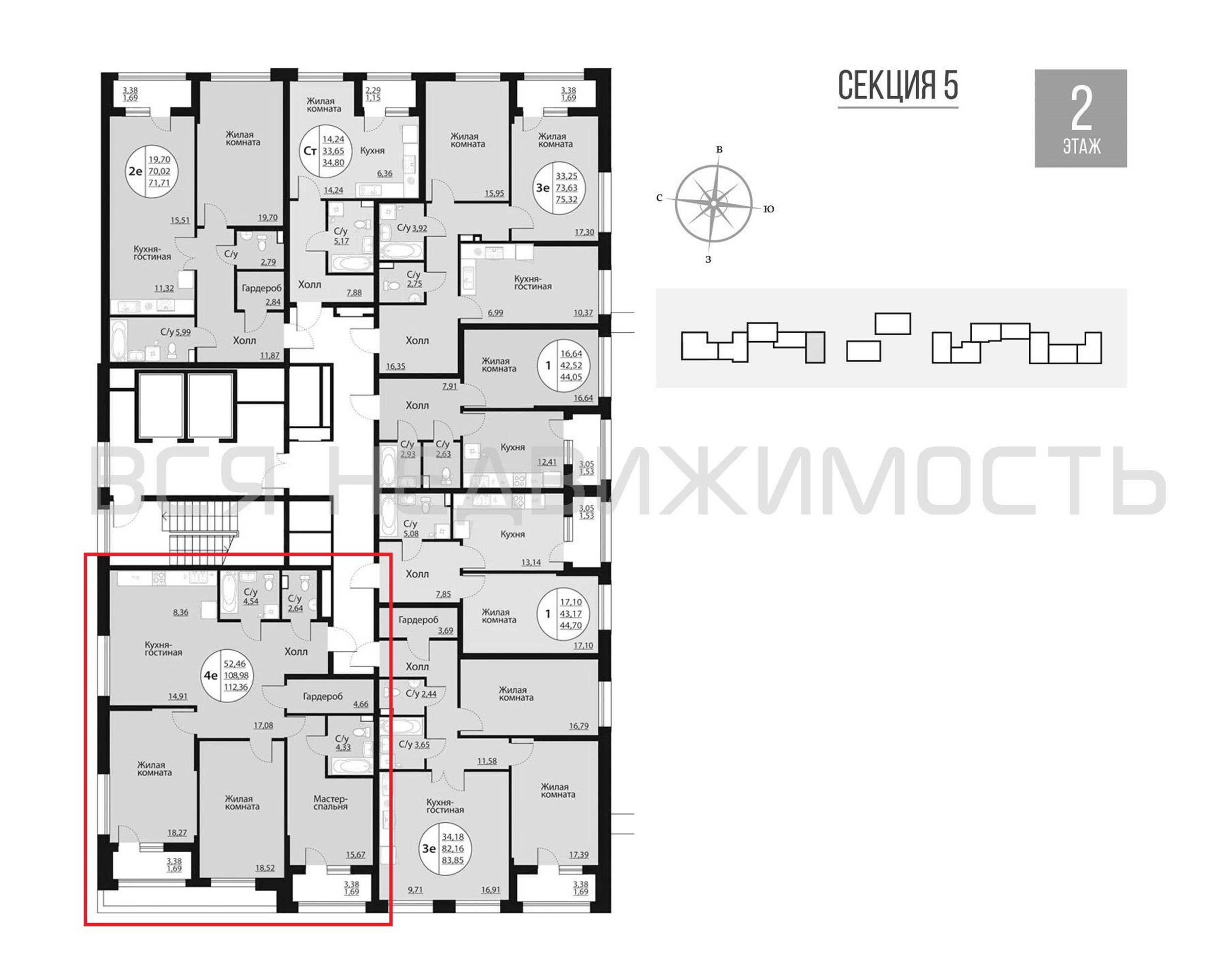 3-комнатная квартира, 112.36 м² 2/16 этаж ID объекта 100094013