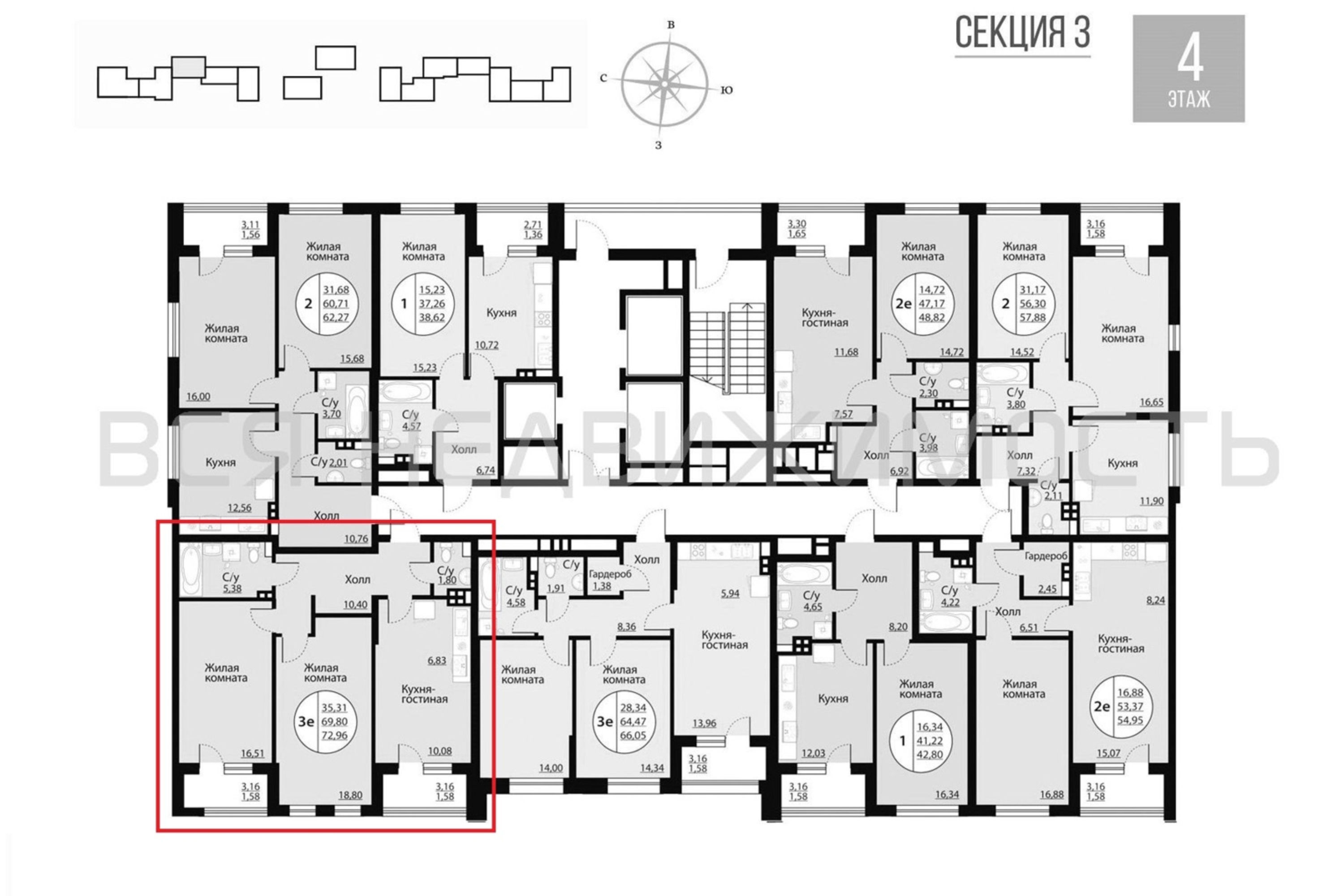 2-комнатная квартира, 72.96 м² 4/20 этаж ID объекта 100094122