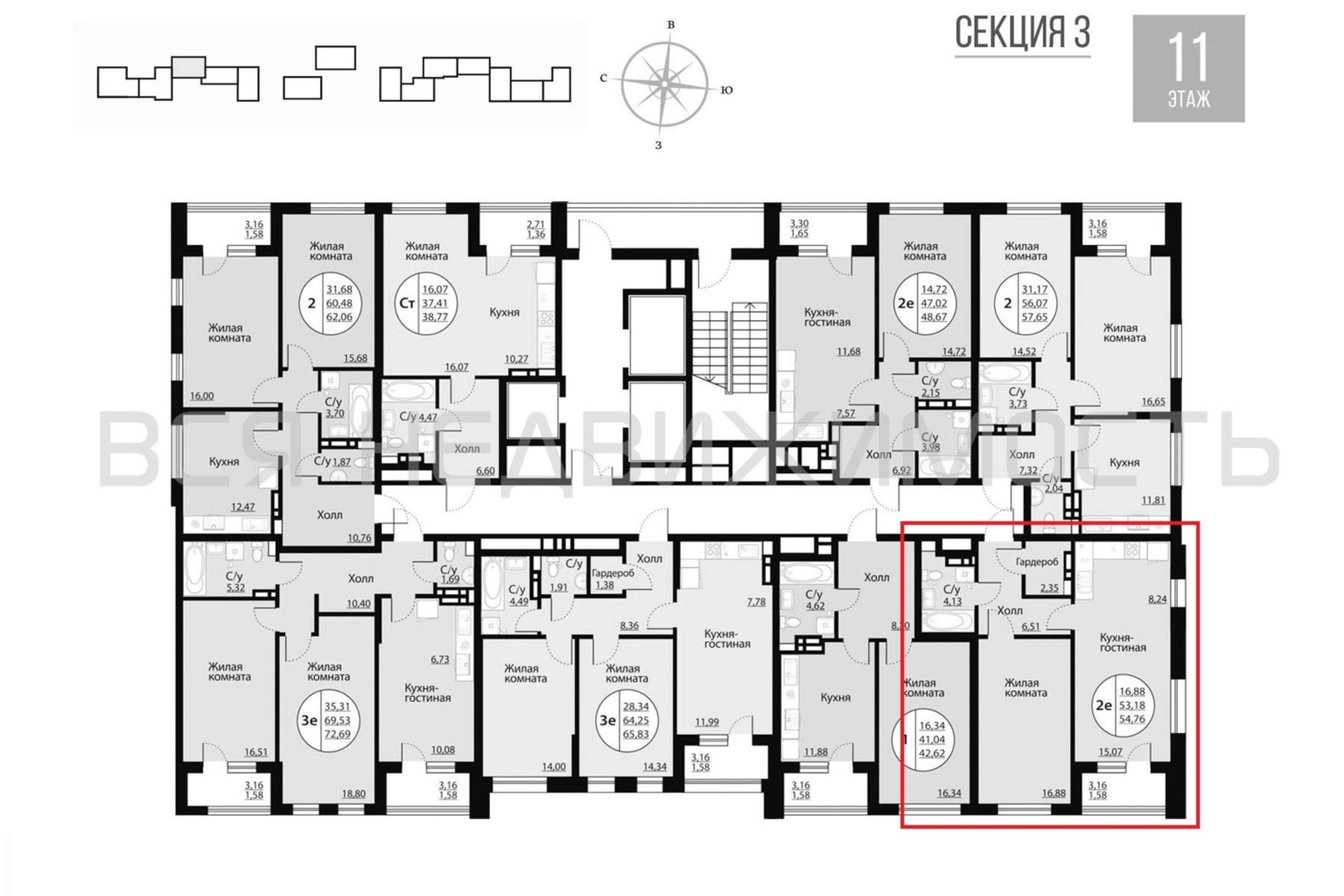 1-комнатная квартира, 54.76 м² 11/20 этаж ID объекта 100094158