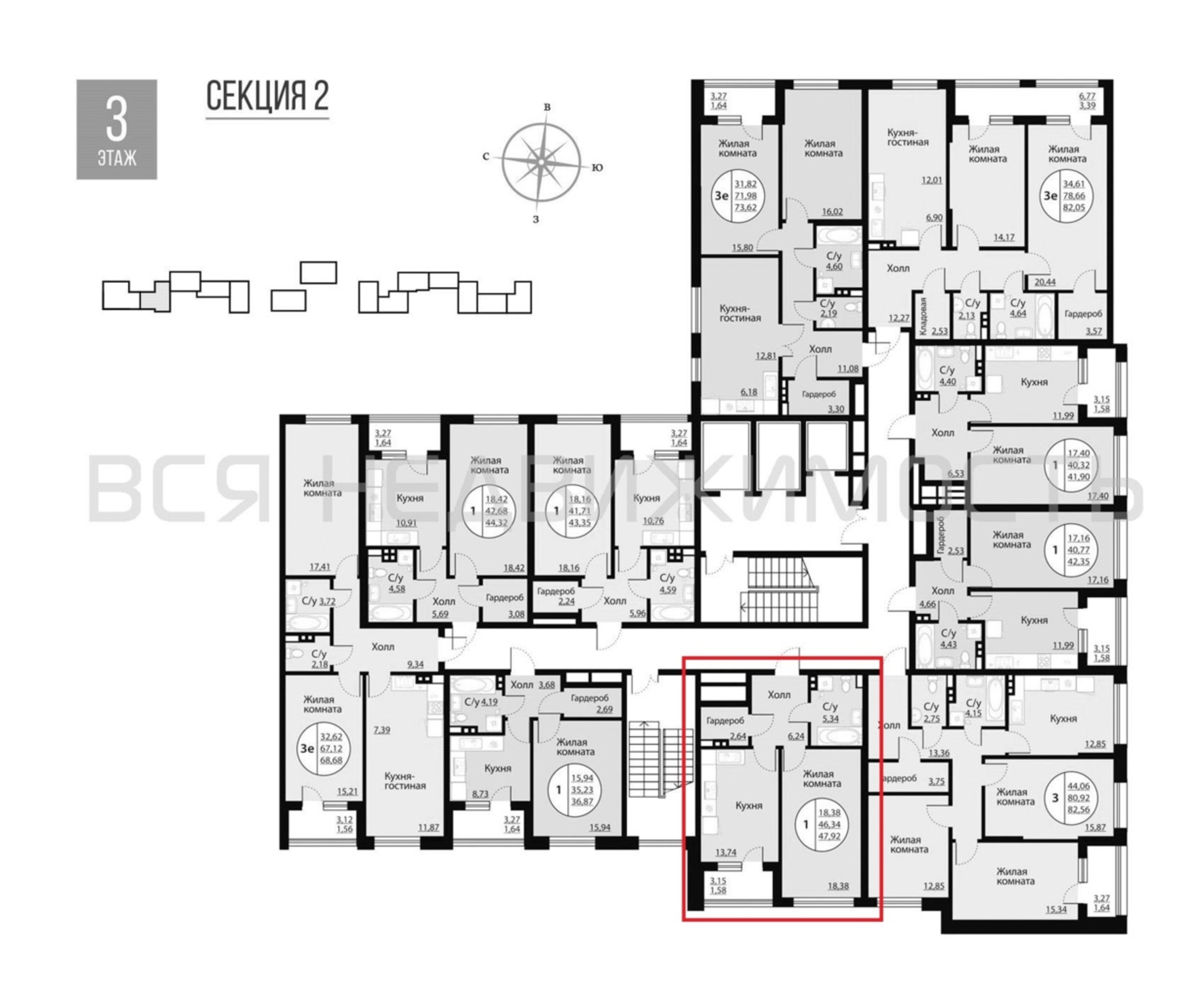 1-комнатная квартира, 47.92 м² 3/14 этаж ID объекта 100094203