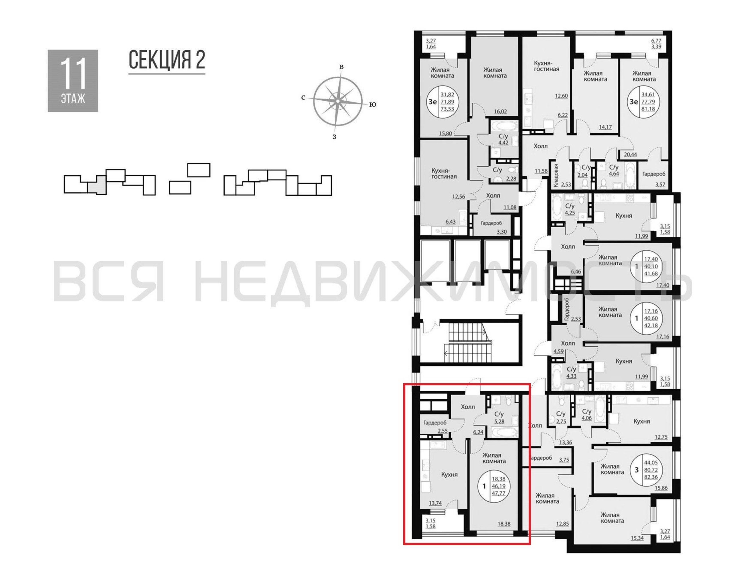 1-комнатная квартира, 47.77 м² 11/14 этаж ID объекта 100094253