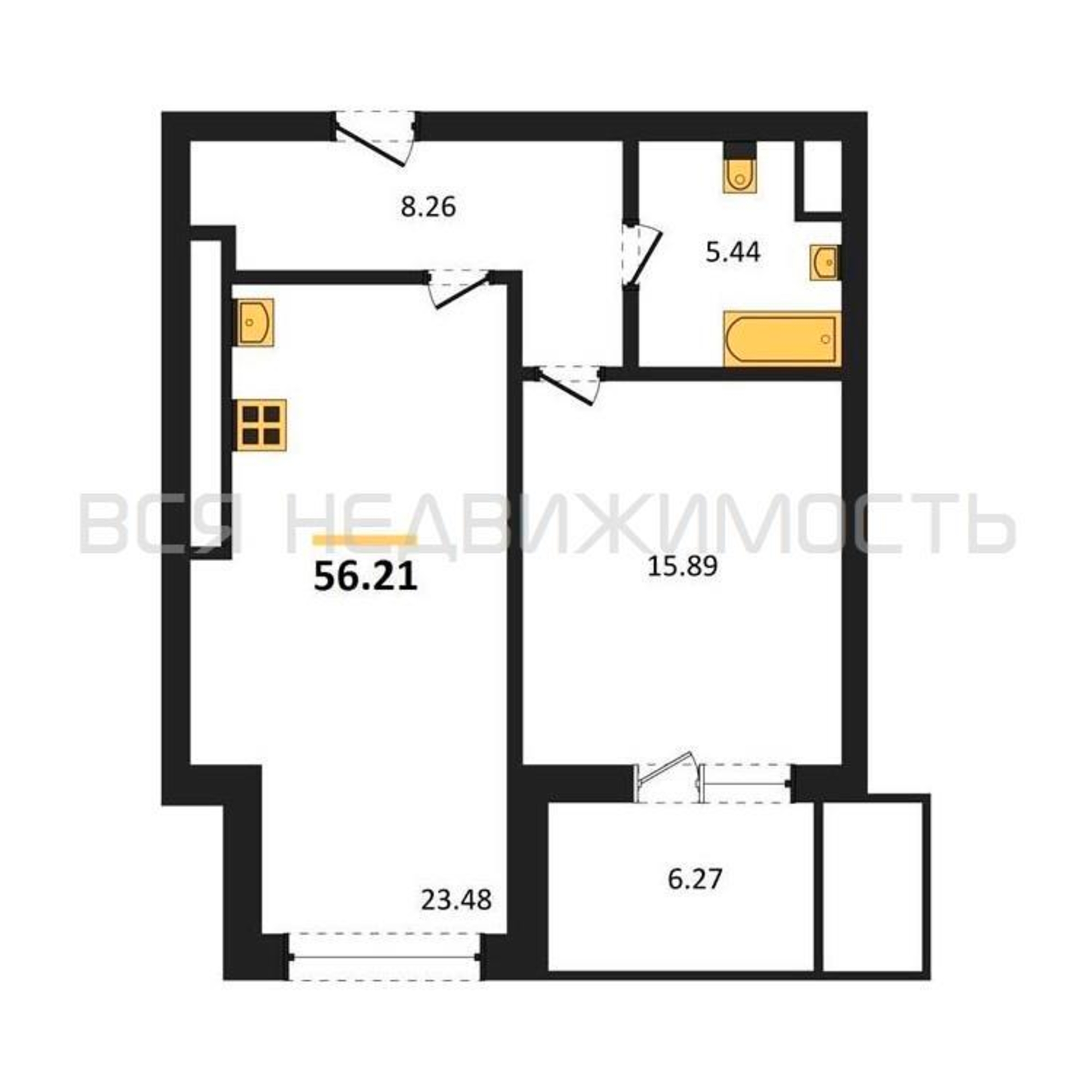 1-комнатная квартира, 56.21 м² 2/9 этаж ID объекта 100094301