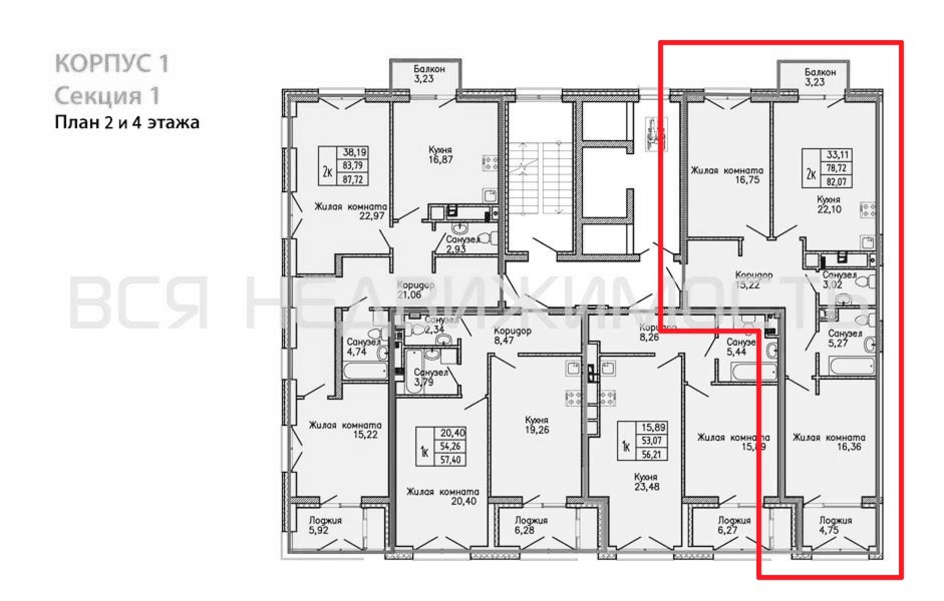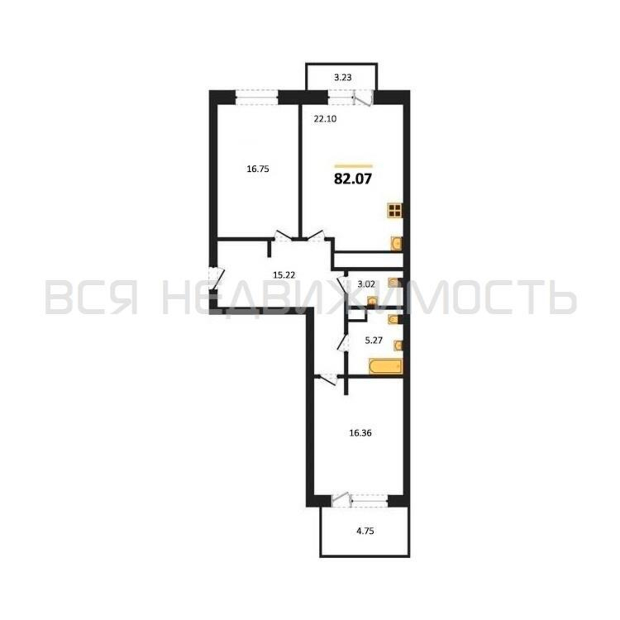 2-комнатная квартира, 82.07 м² 4/9 этаж ID объекта 100094315
