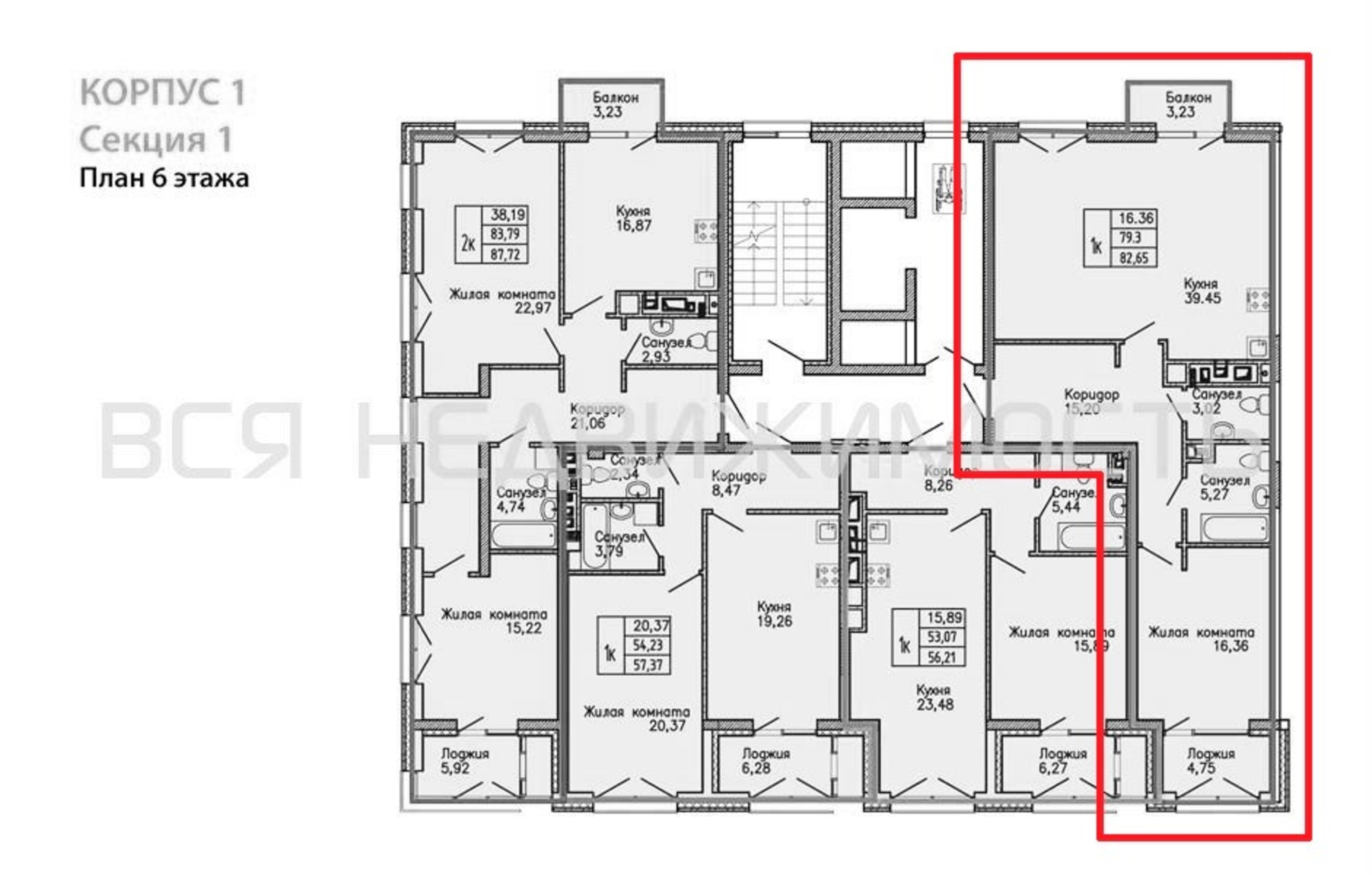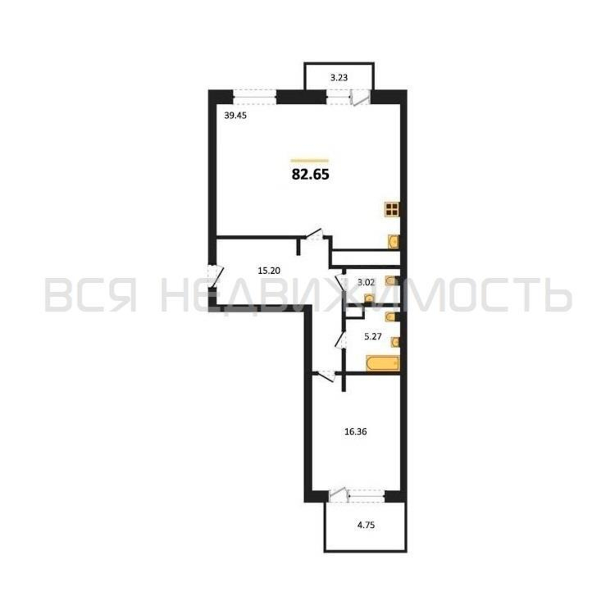 1-комнатная квартира, 82.65 м² 6/9 этаж ID объекта 100094326