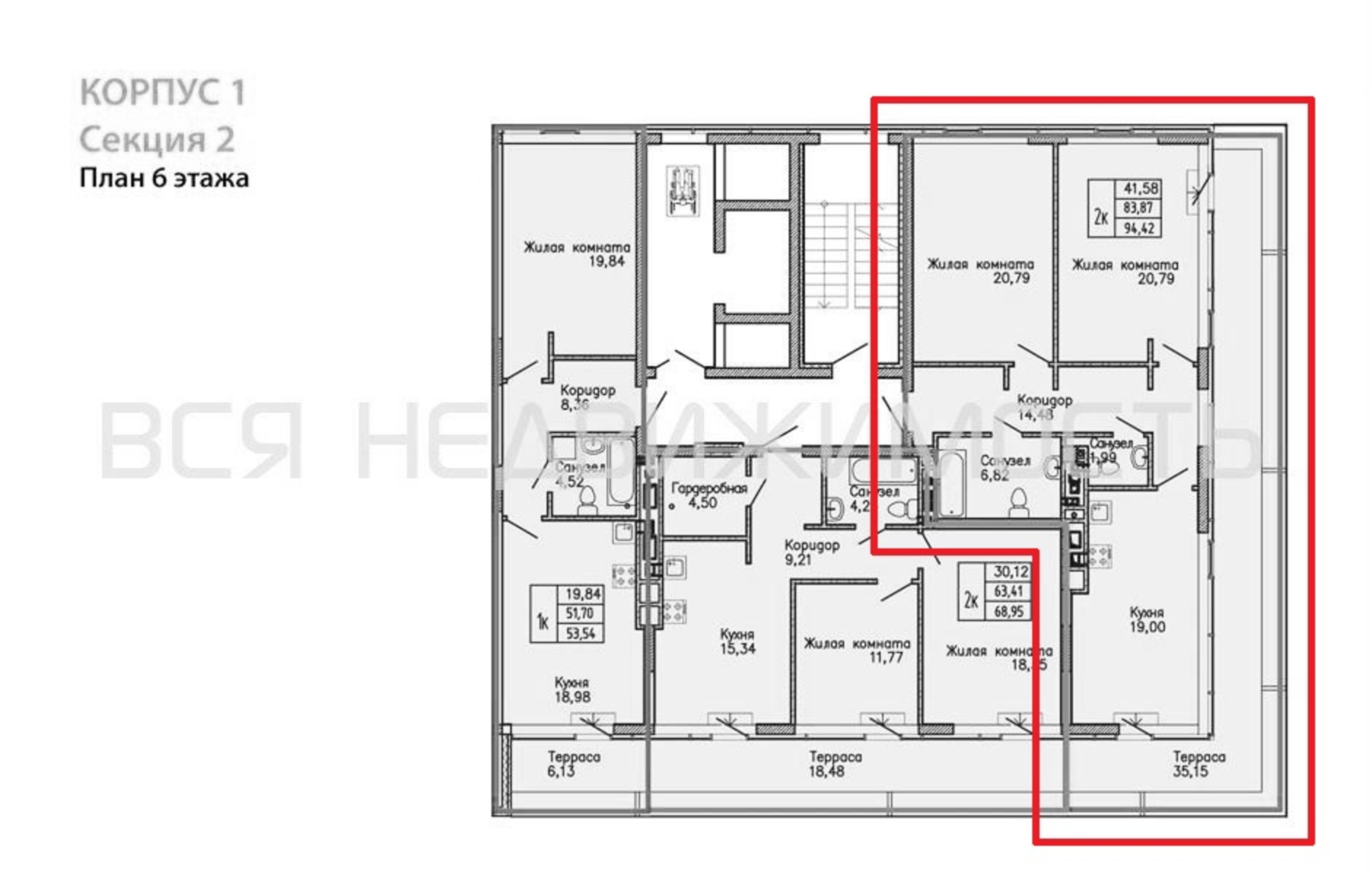2-комнатная квартира, 94.42 м² 6/9 этаж ID объекта 100094339