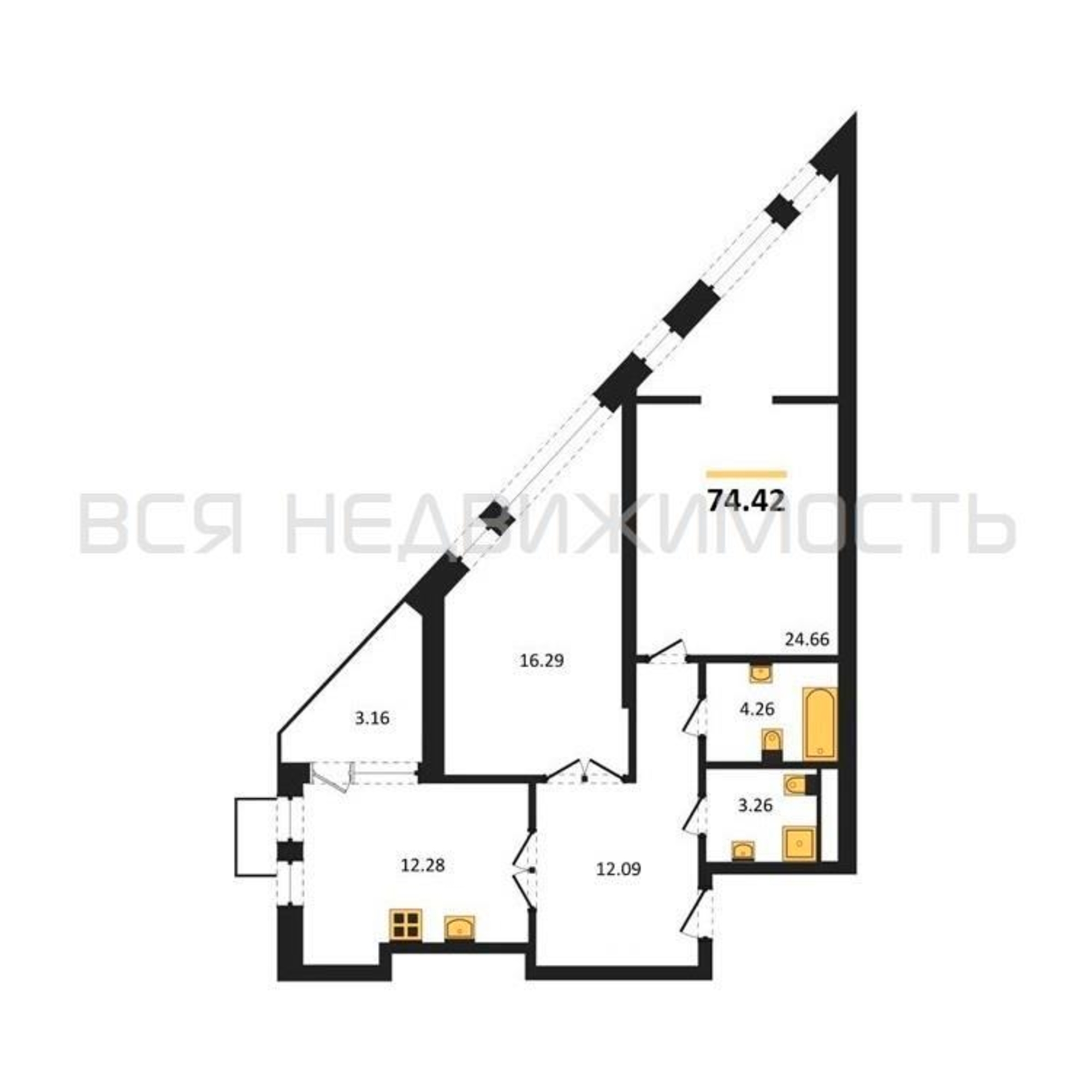 2-комнатная квартира, 74.42 м² 1/21 этаж ID объекта 100096129