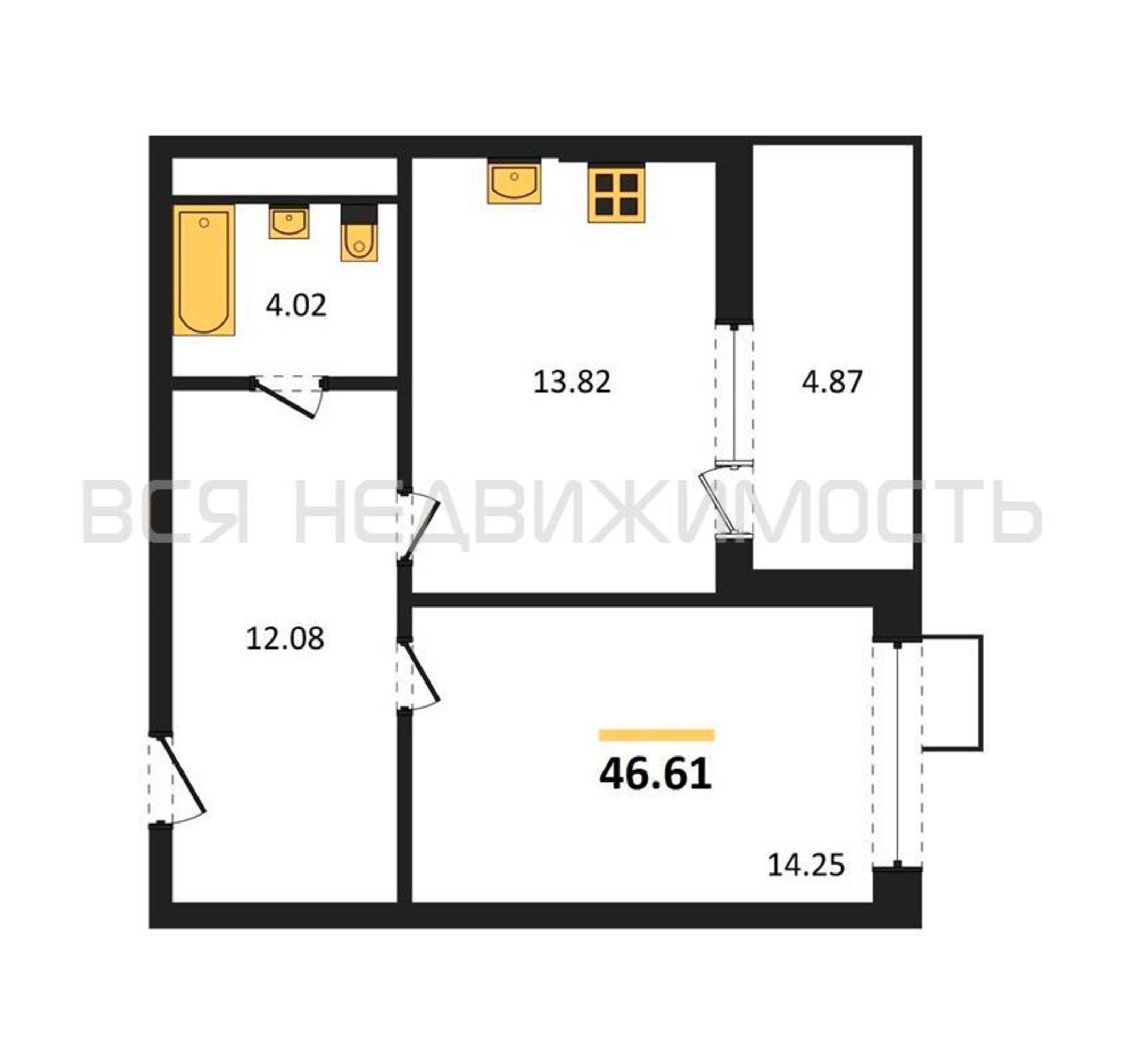 1-комнатная квартира, 46.61 м² 1/21 этаж ID объекта 100096130