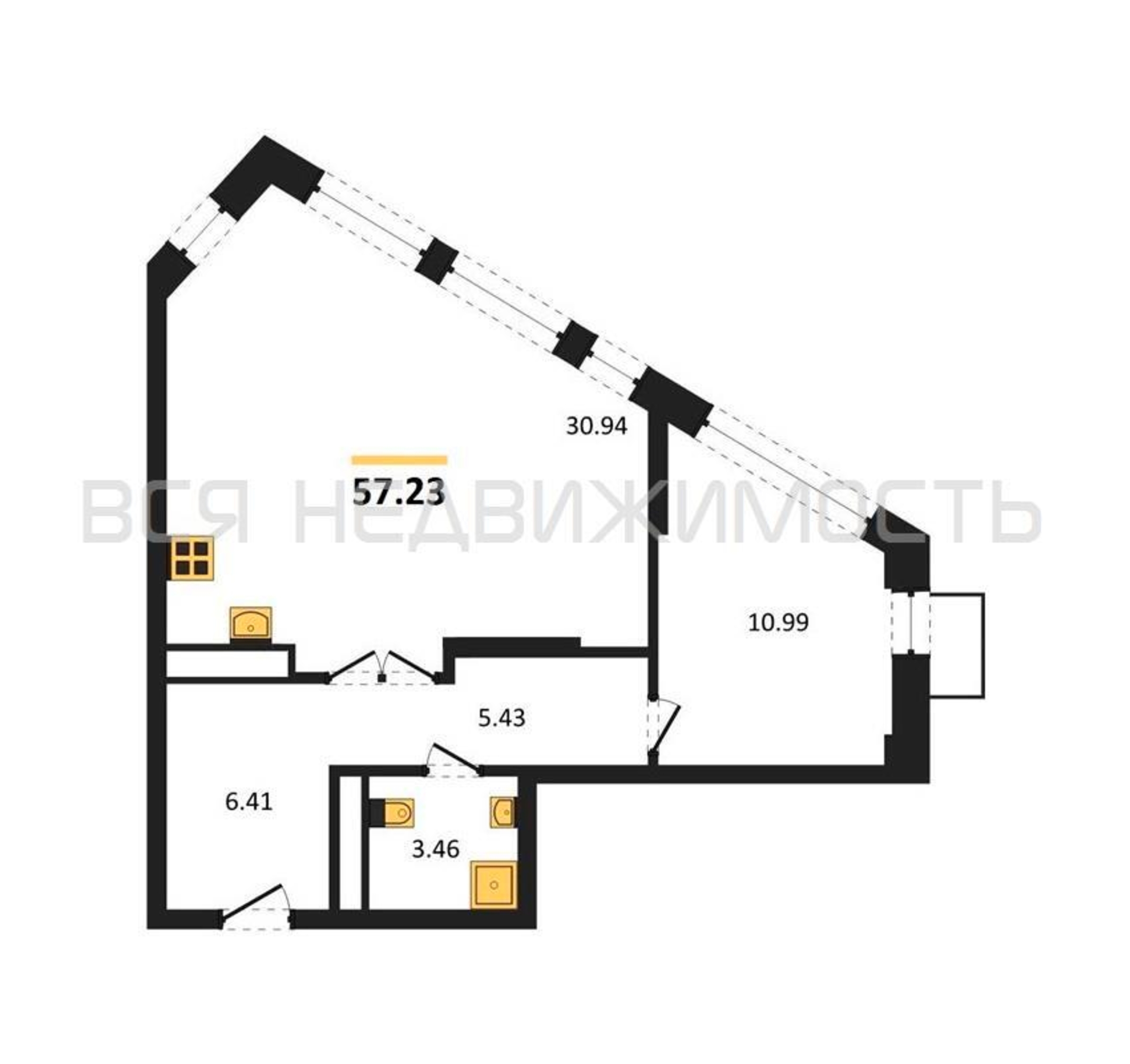 1-комнатная квартира, 57.23 м² 2/21 этаж ID объекта 100096132