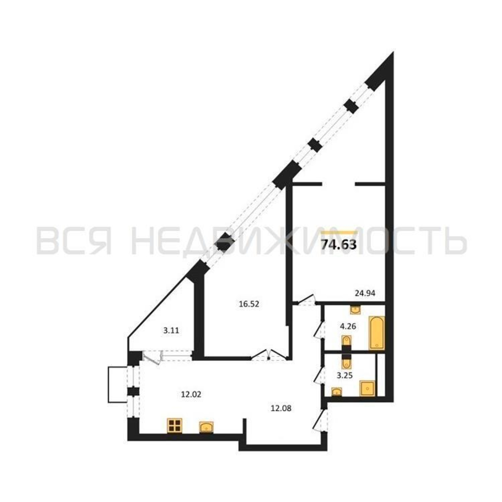 Строительная площадь74.63 м²