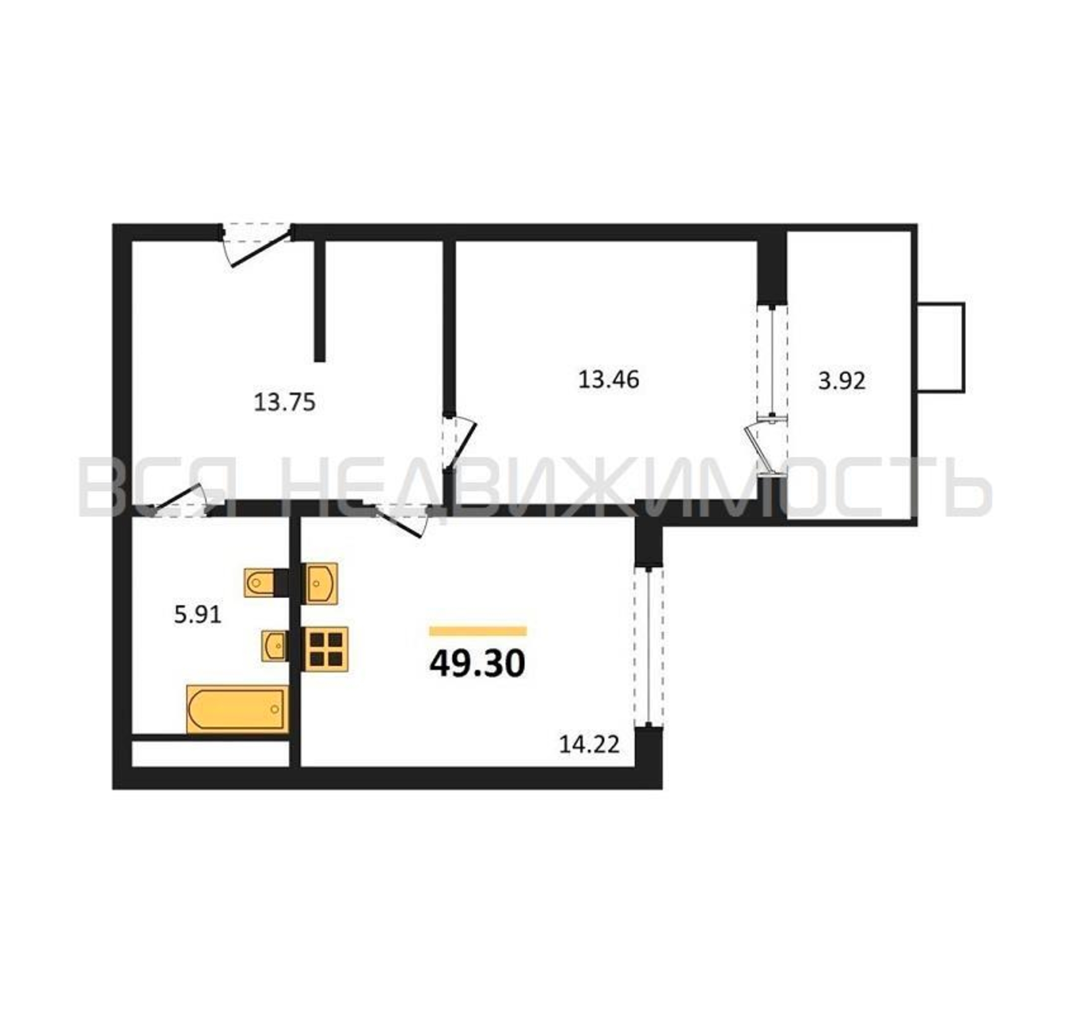 Строительная площадь49.30 м²