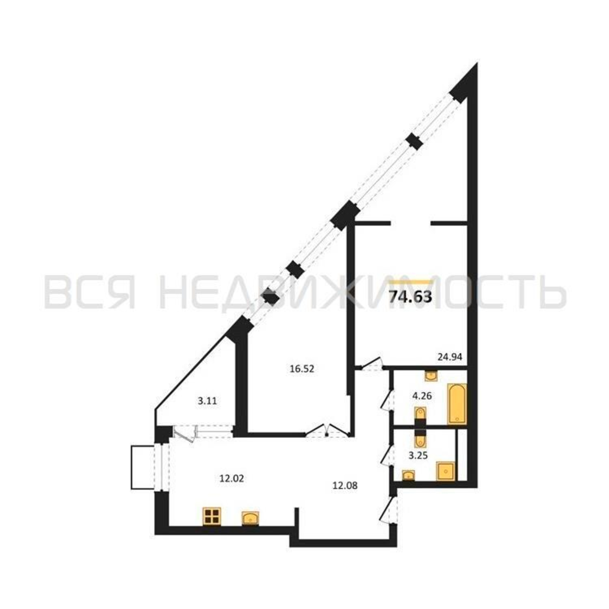 2-комнатная квартира, 74.63 м² 2/21 этаж ID объекта 100096262
