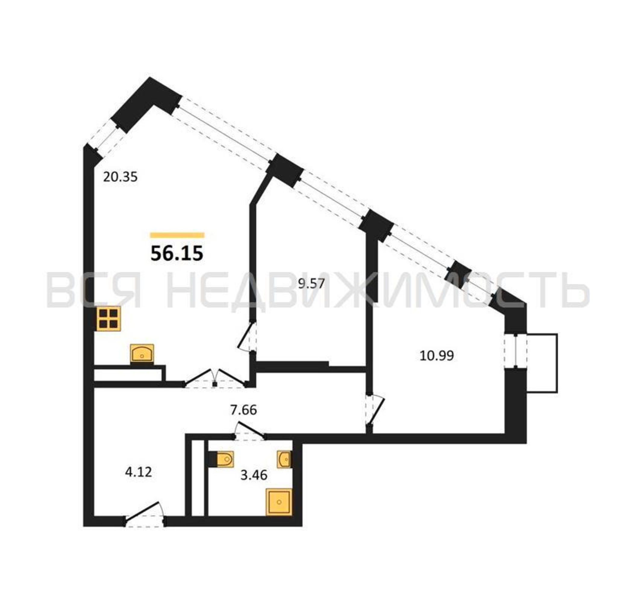 2-комнатная квартира, 56.15 м² 4/21 этаж ID объекта 100096274