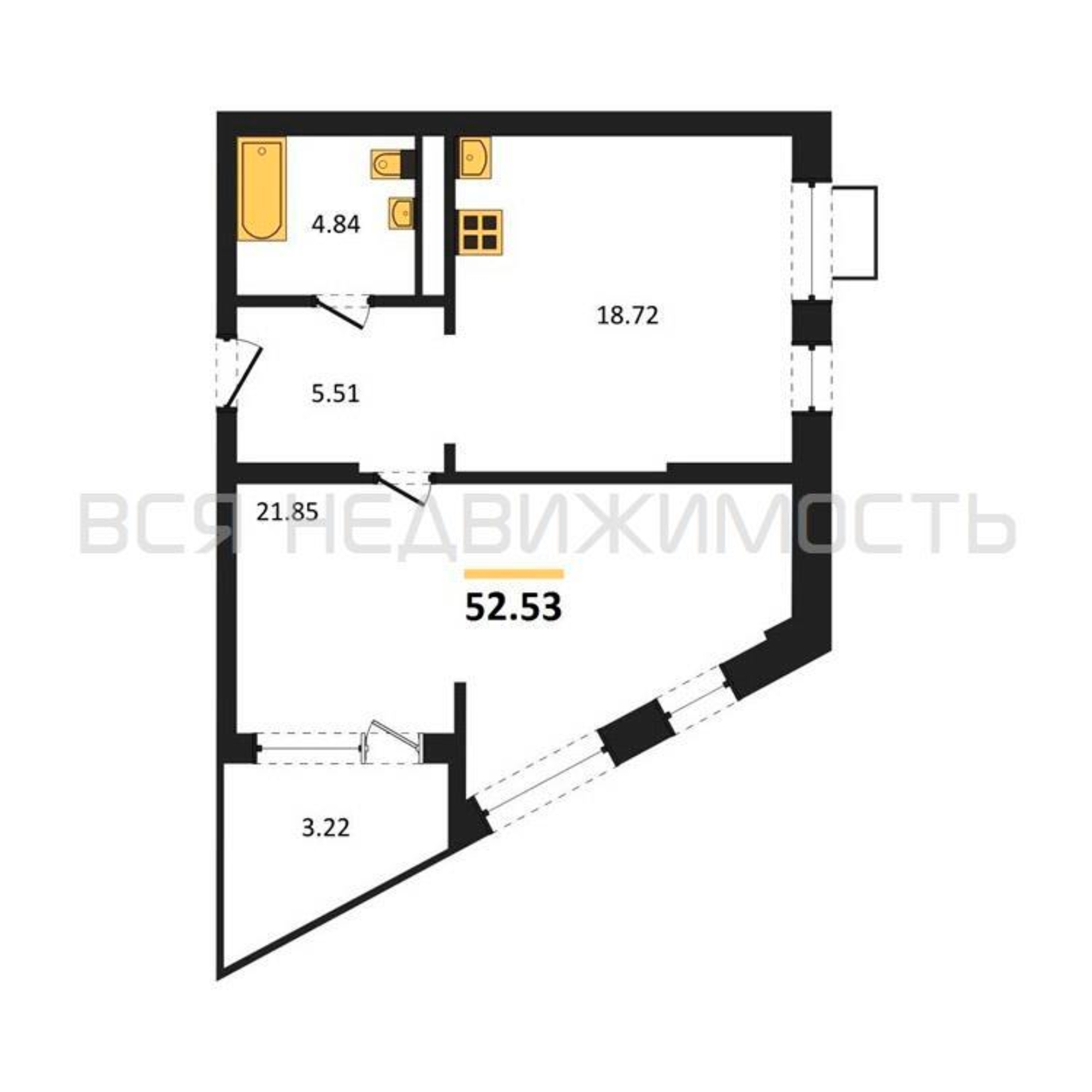 1-комнатная квартира, 52.53 м² 4/19 этаж ID объекта 100096286