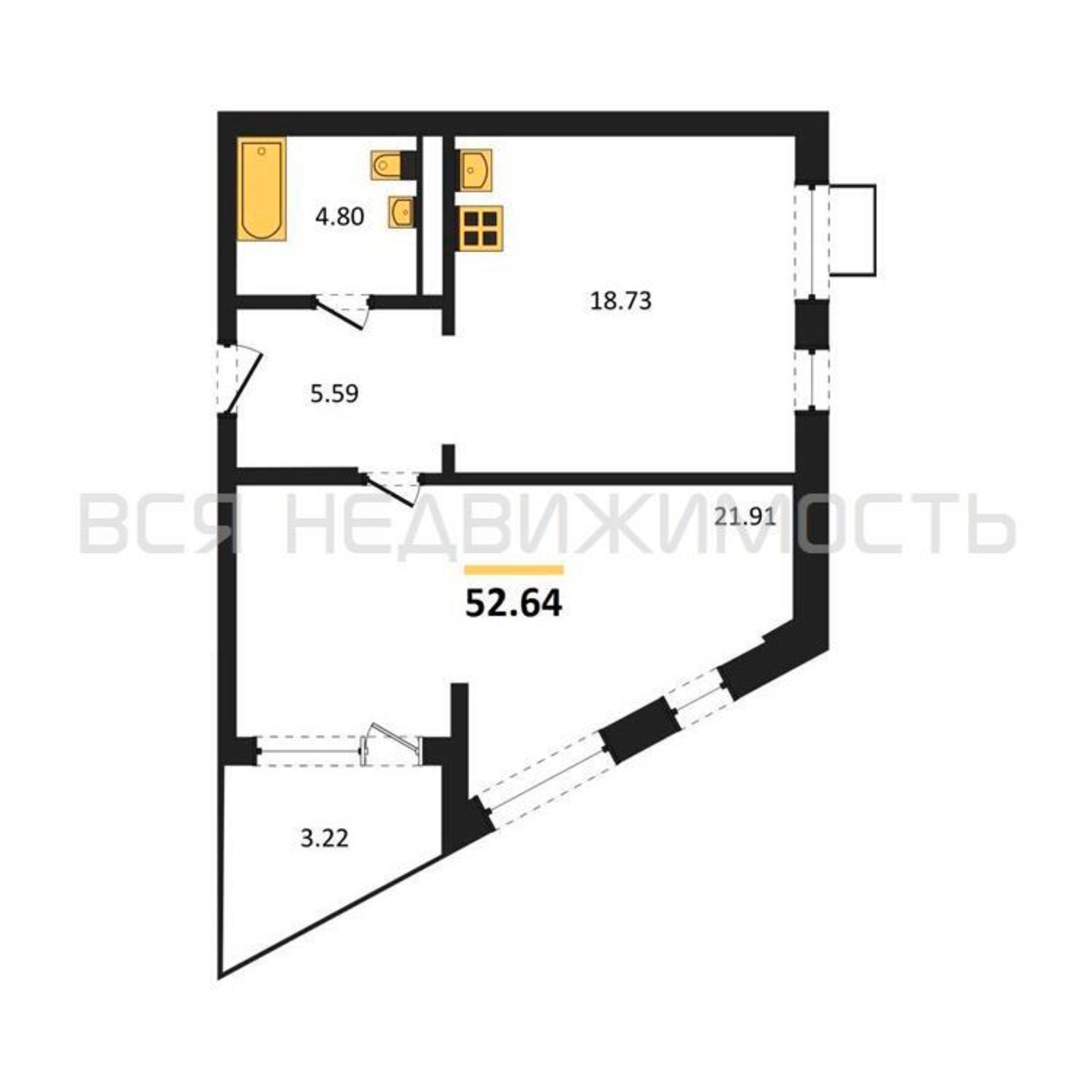 1-комнатная квартира, 52.64 м² 8/19 этаж ID объекта 100096327