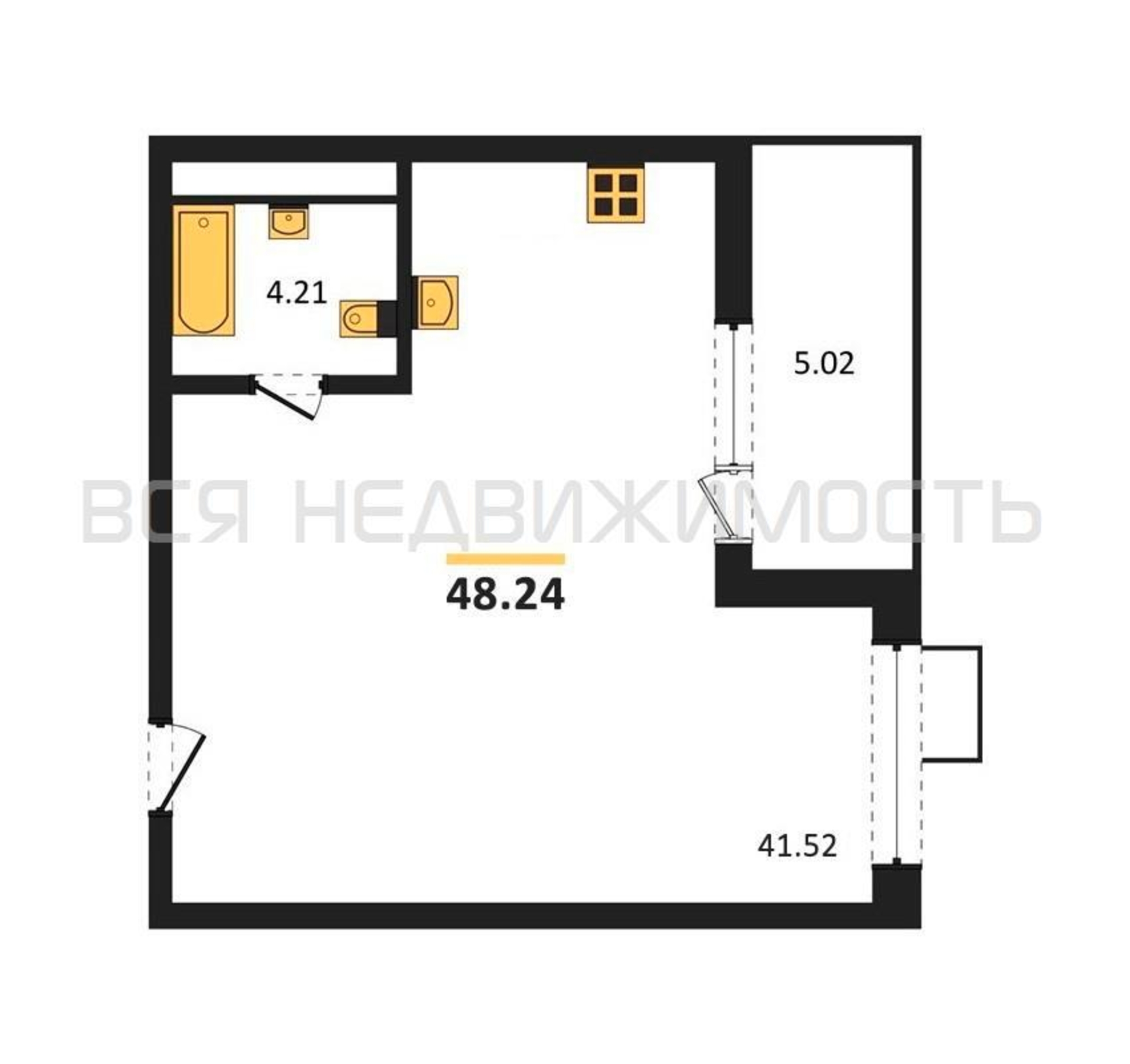 Квартиры-студии, 48.24 м² 21/21 этаж ID объекта 100096489