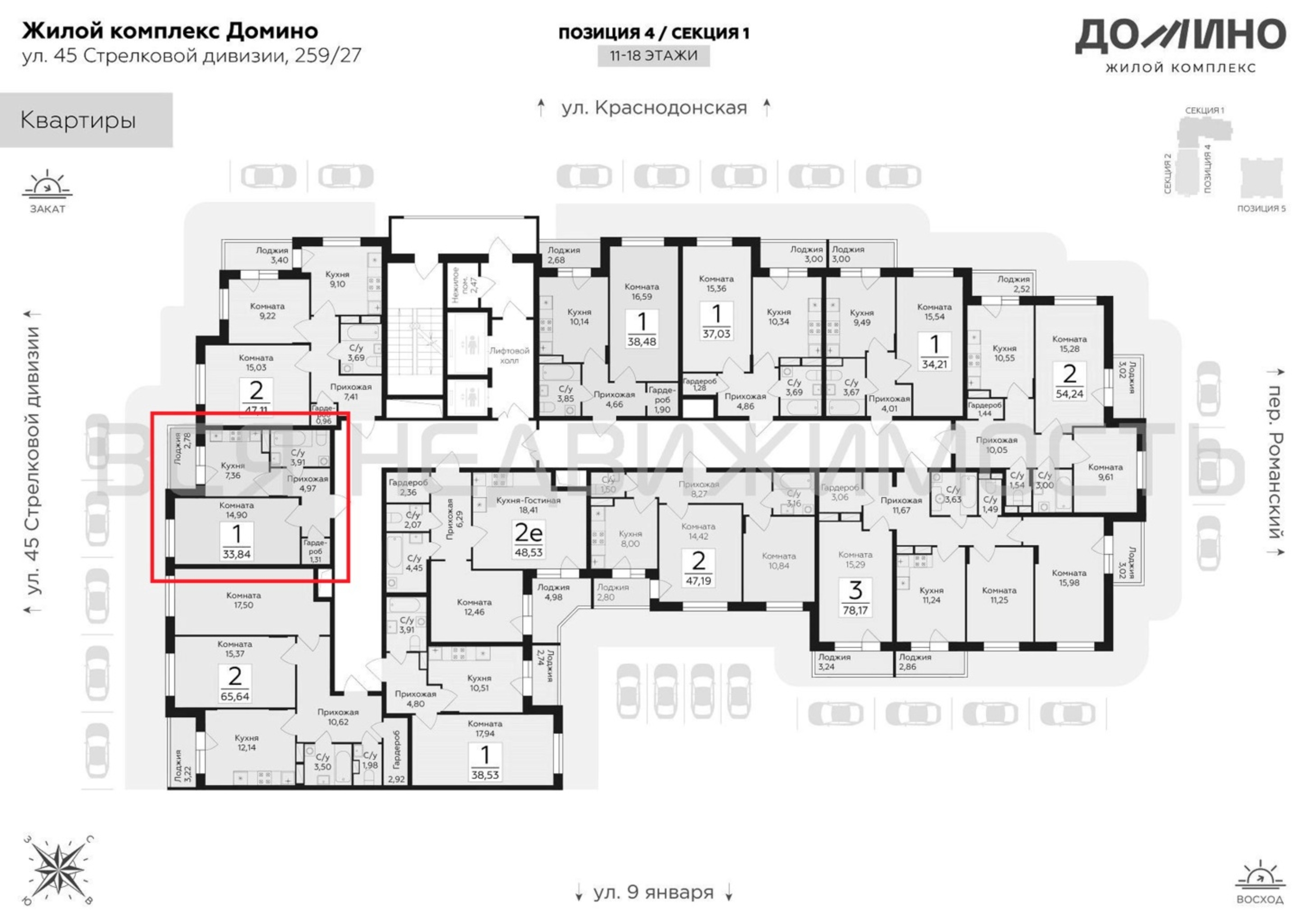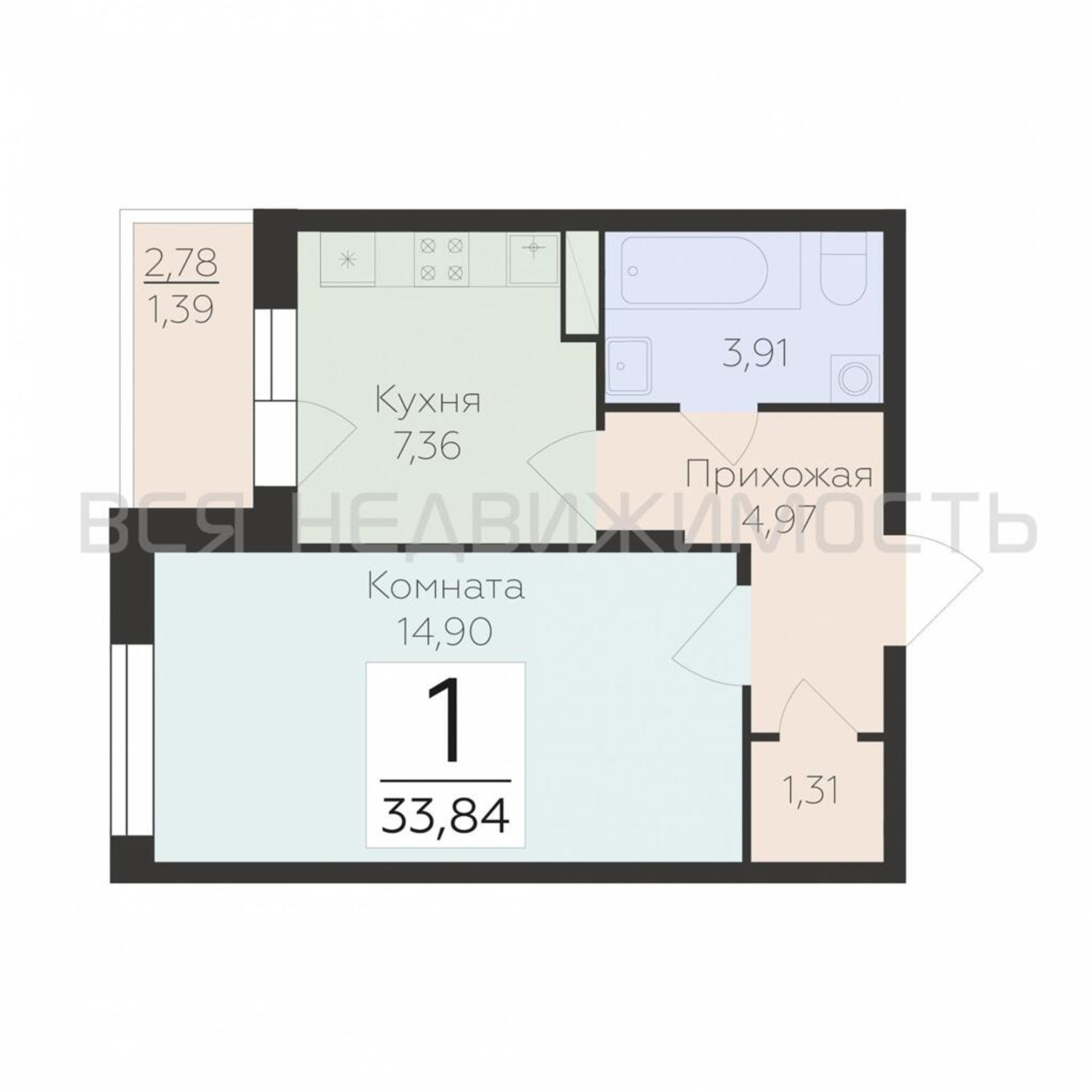 1-комнатная квартира, 33.84 м² 14/18 этаж ID объекта 100096680