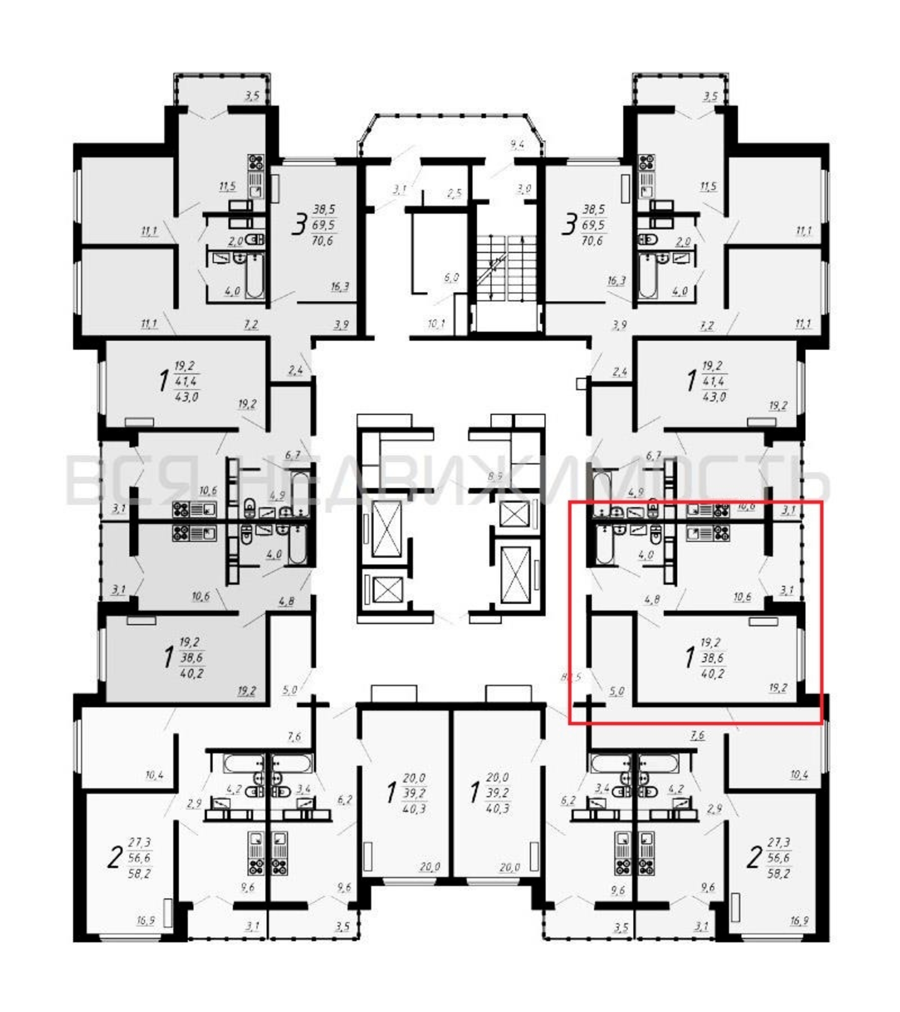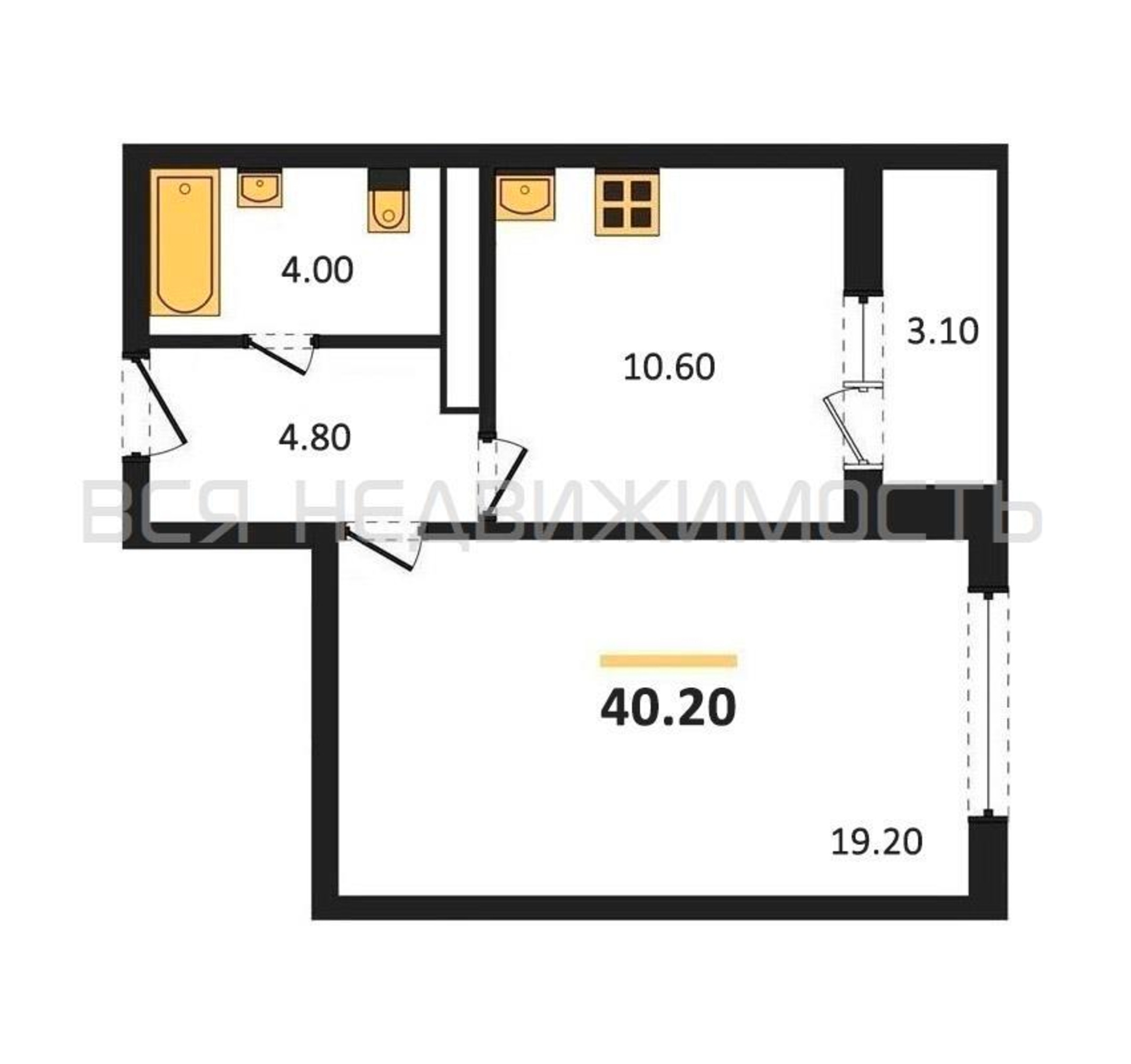 1-комнатная квартира, 40.20 м² 8/25 этаж ID объекта 100097191