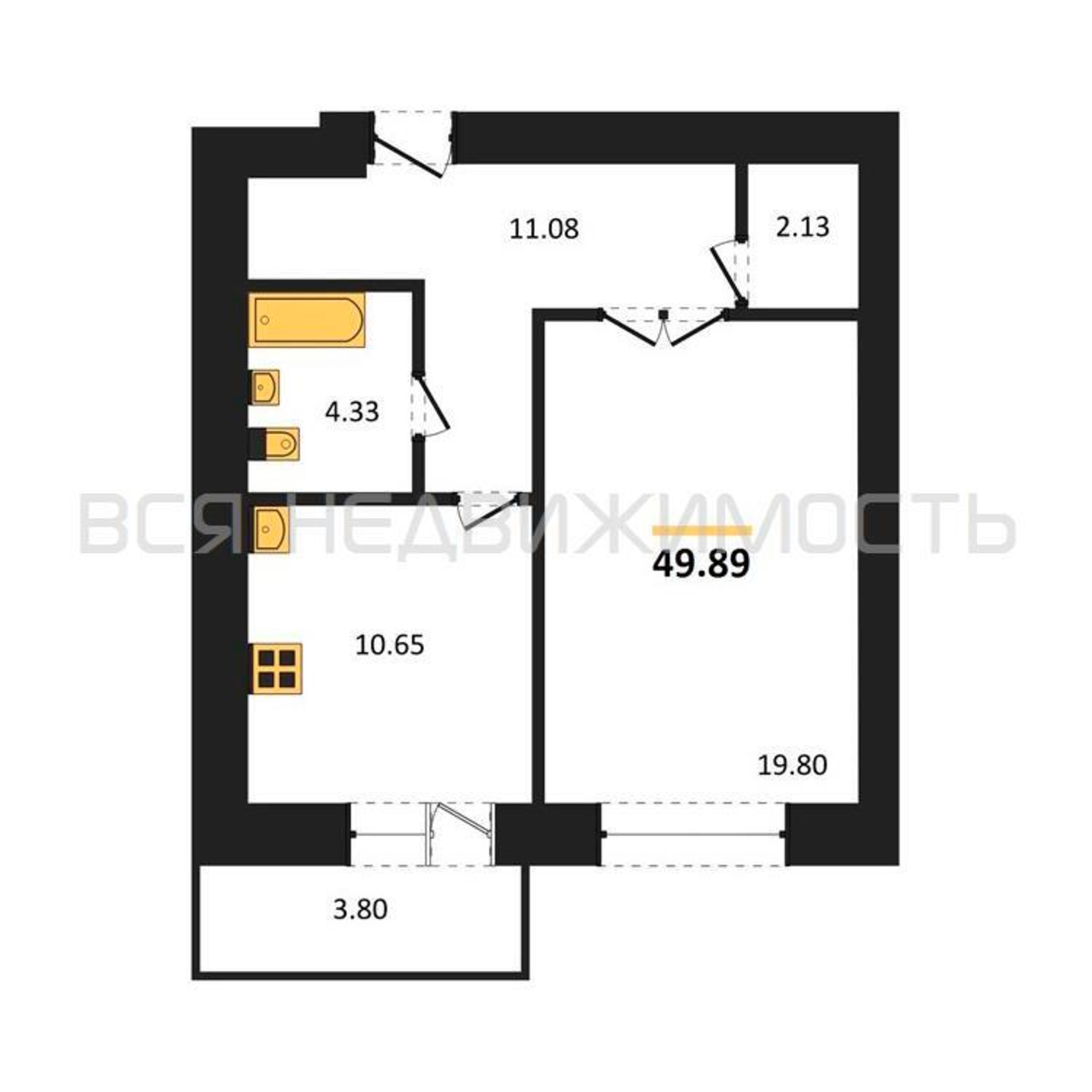 1-комнатная квартира, 49.89 м² 12/14 этаж ID объекта 100097800