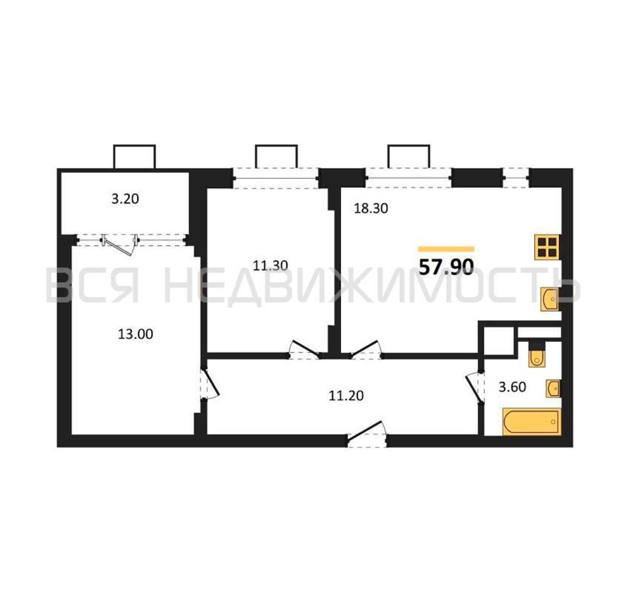 Строительная площадь57.90 м²
