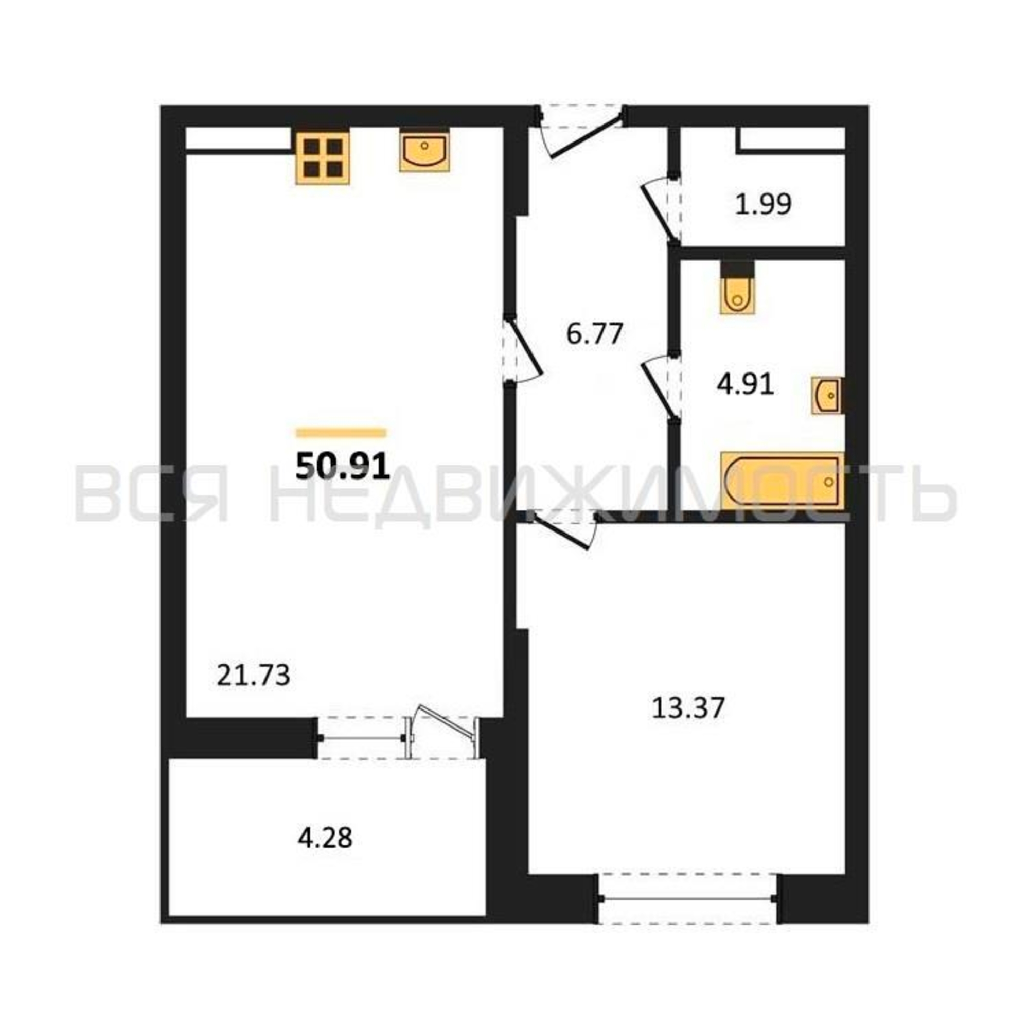Строительная площадь50.91 м²