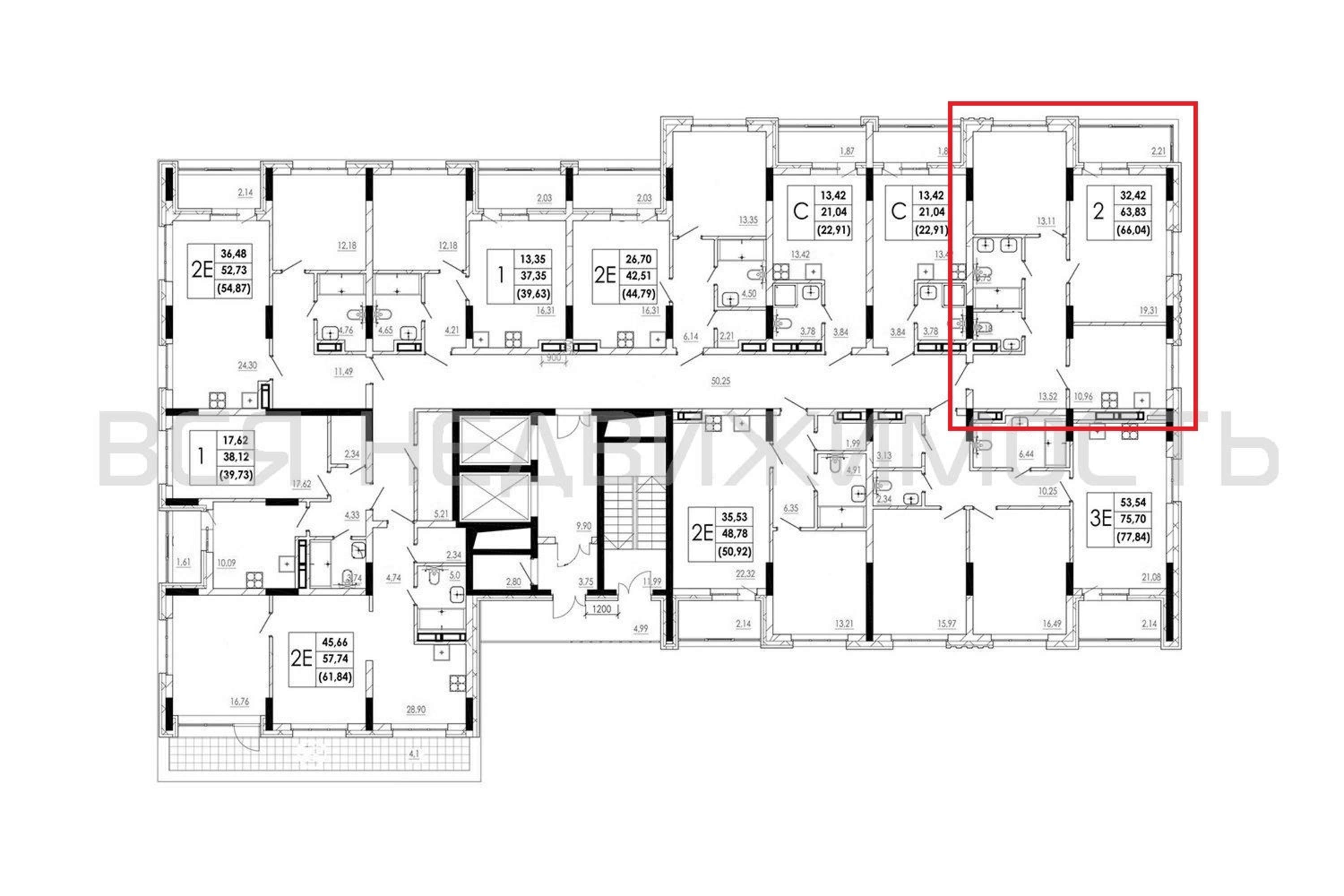 2-комнатная квартира, 66.04 м² 8/15 этаж ID объекта 100099088