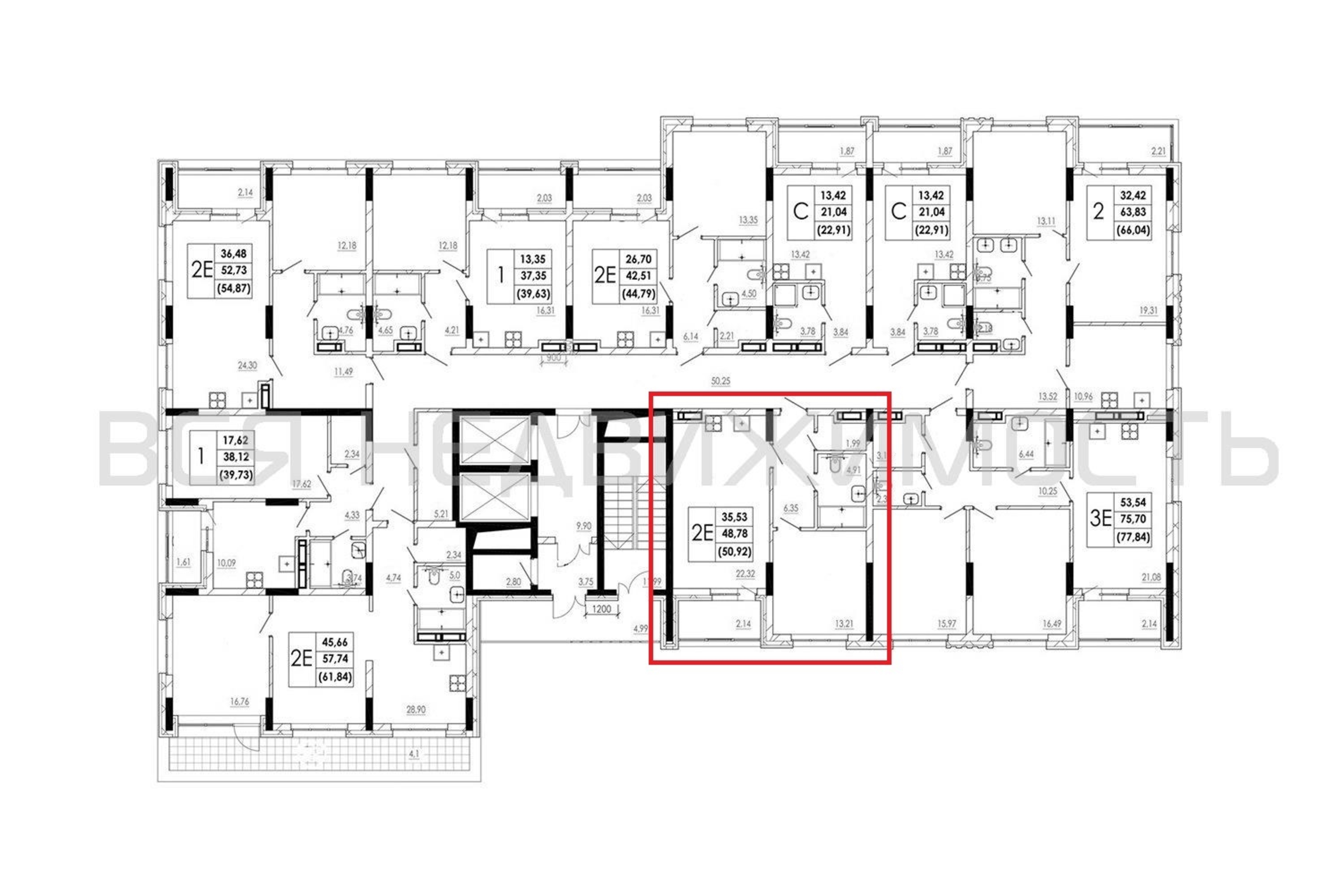 1-комнатная квартира, 50.92 м² 8/15 этаж ID объекта 100099090