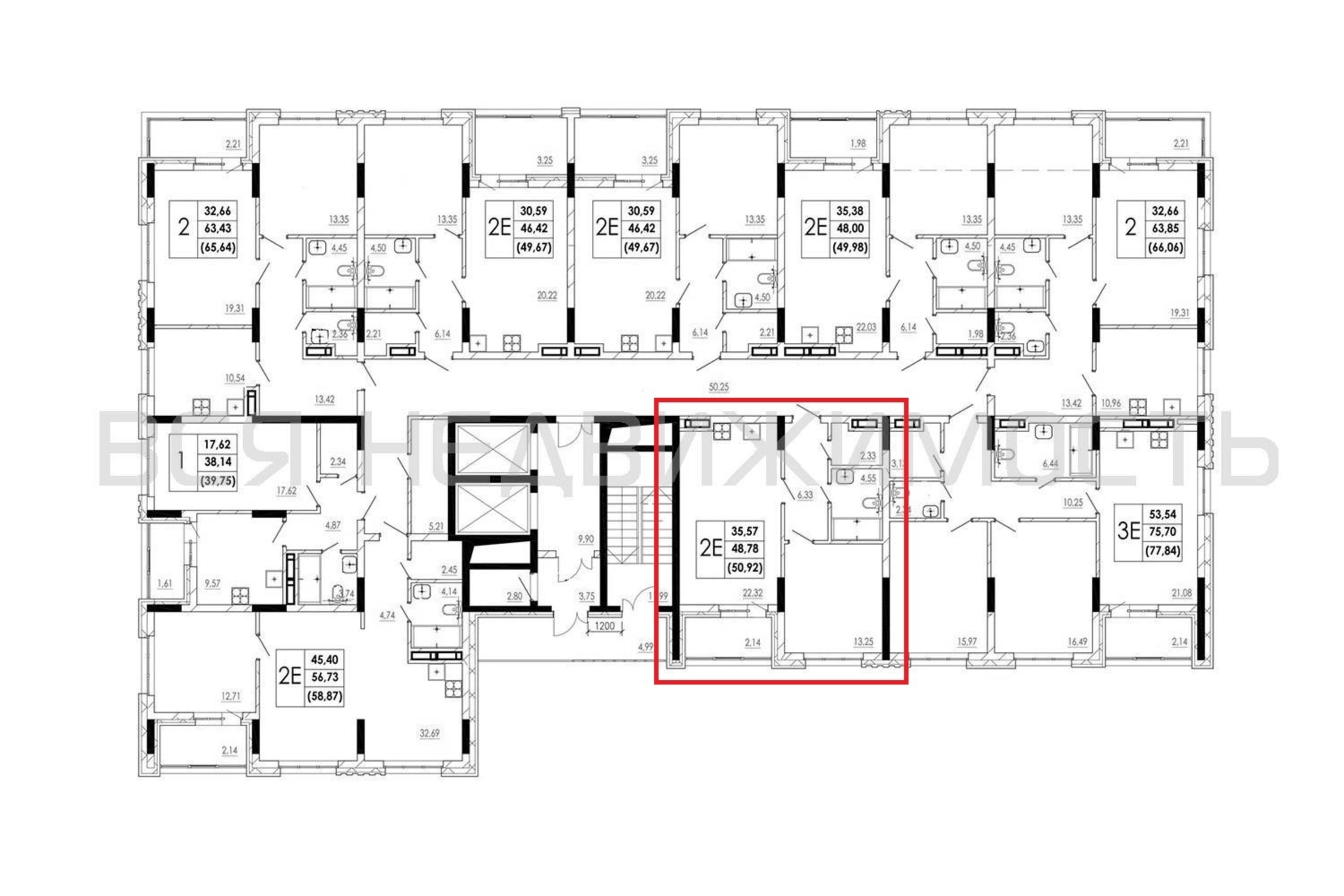 1-комнатная квартира, 50.92 м² 9/15 этаж ID объекта 100099099
