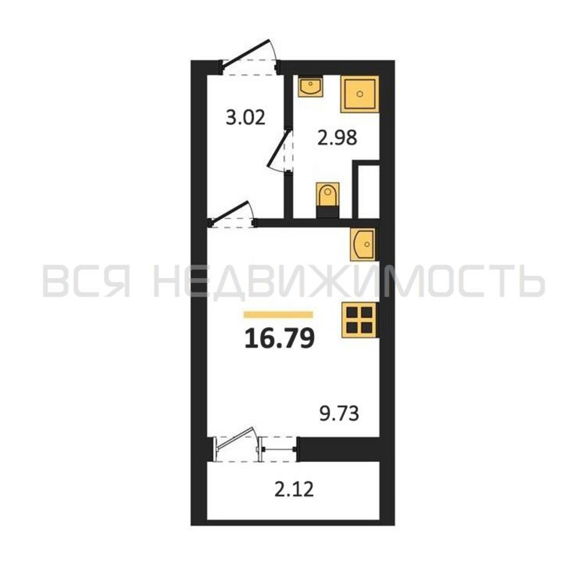Квартиры-студии, 16.79 м² 10/15 этаж ID объекта 100099433