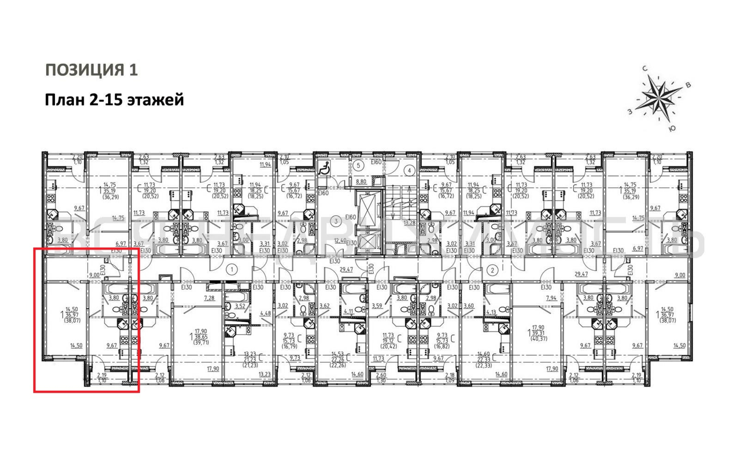 1-комнатная квартира, 38.07 м² 12/15 этаж ID объекта 100099465