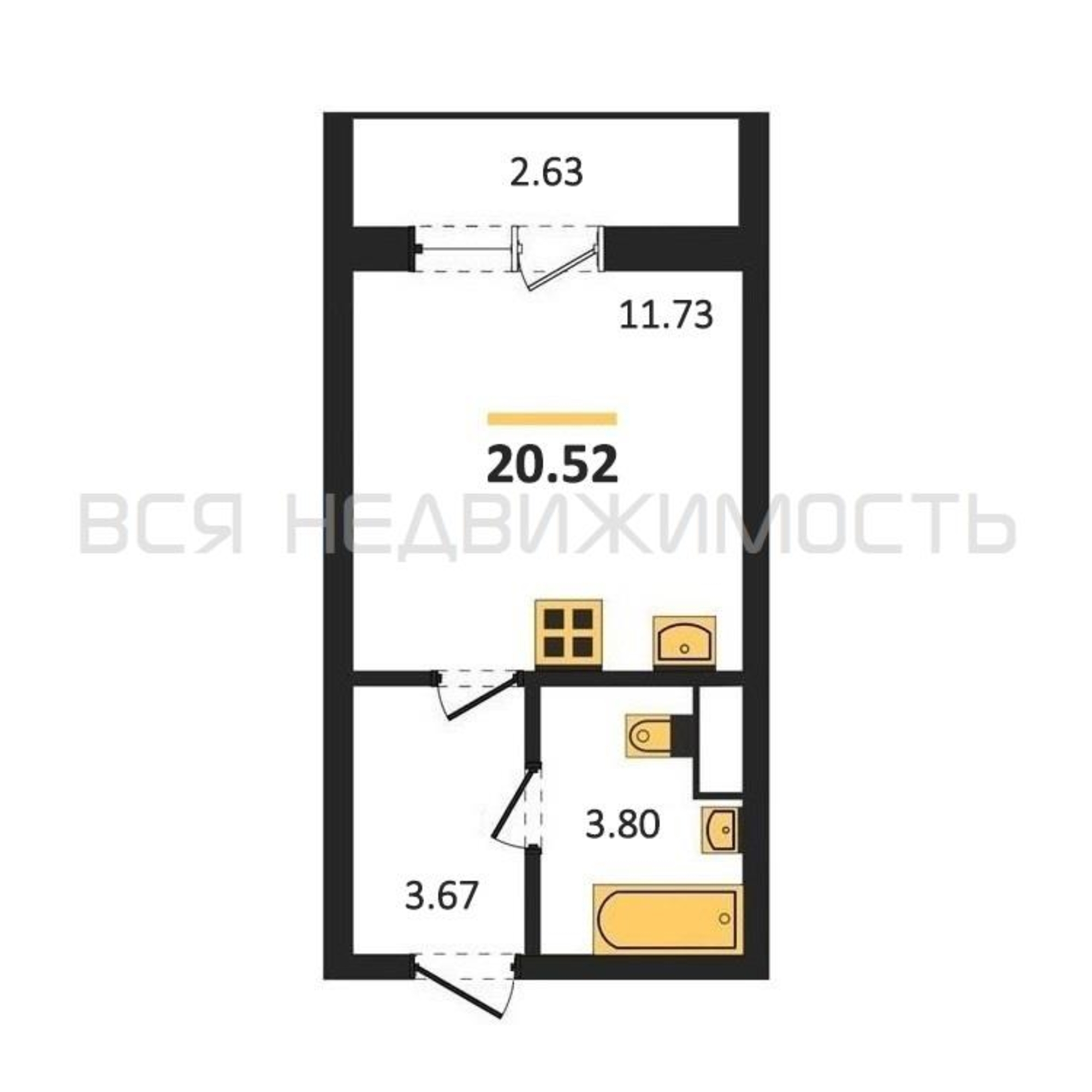 Квартиры-студии, 20.52 м² 12/15 этаж ID объекта 100099467