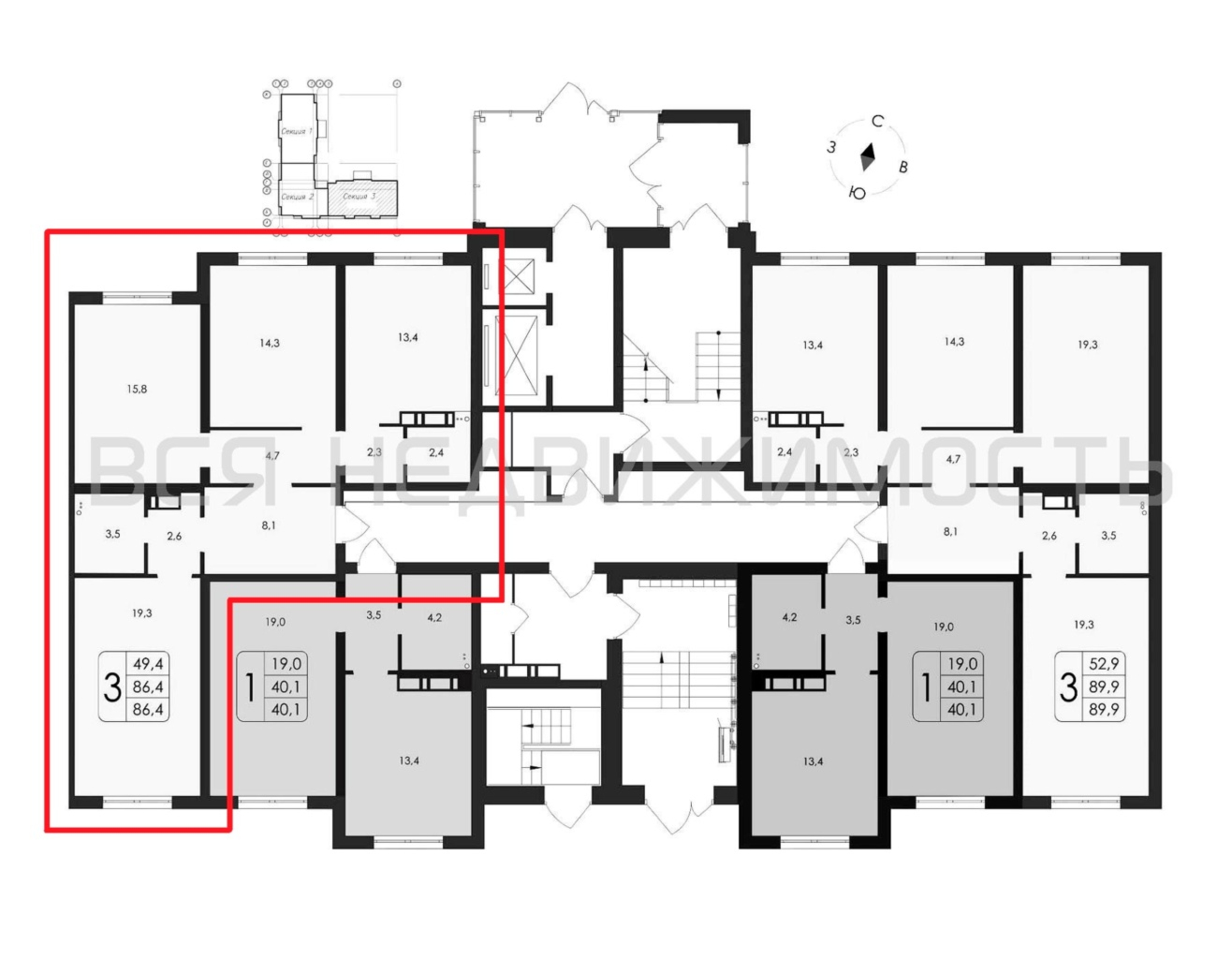 3-комнатная квартира, 86.40 м² 1/17 этаж ID объекта 100099557