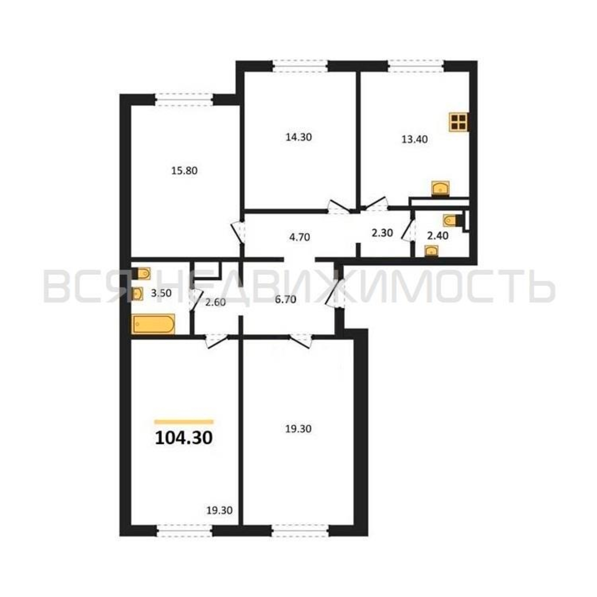 4-комнатная квартира, 104.30 м² 1/17 этаж ID объекта 100099724