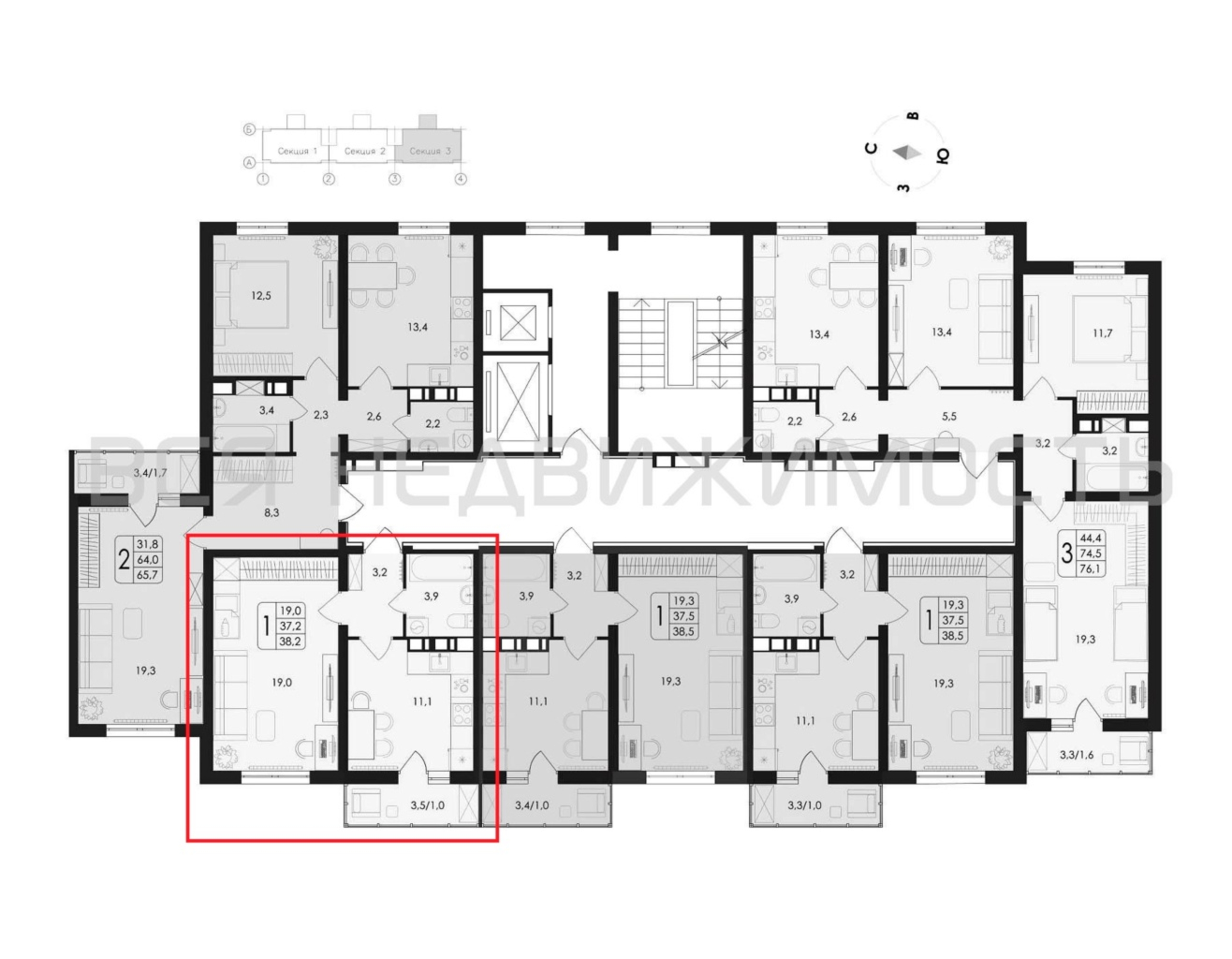 1-комнатная квартира, 38.20 м² 9/10 этаж ID объекта 100099832