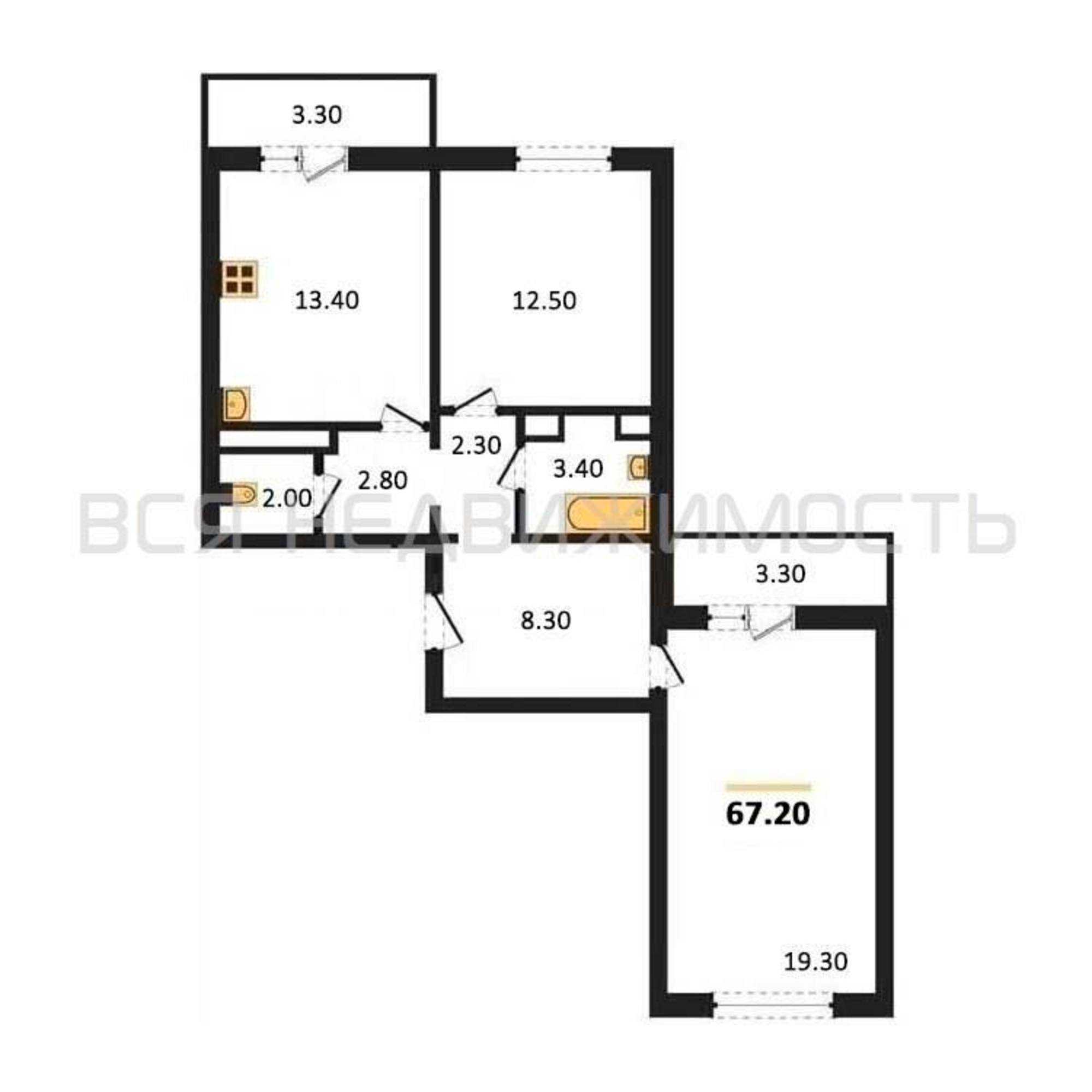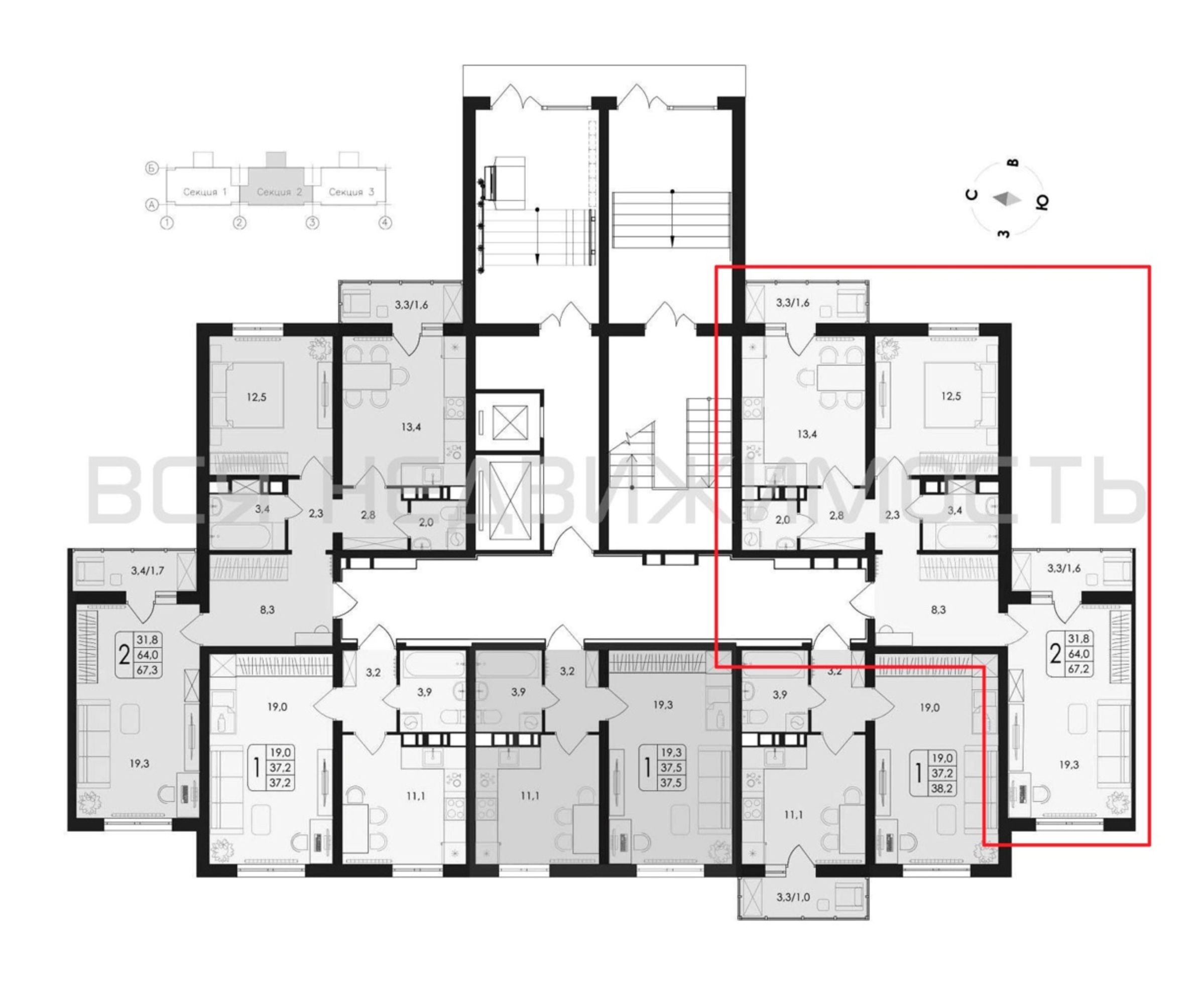 2-комнатная квартира, 67.20 м² 1/10 этаж ID объекта 100099839