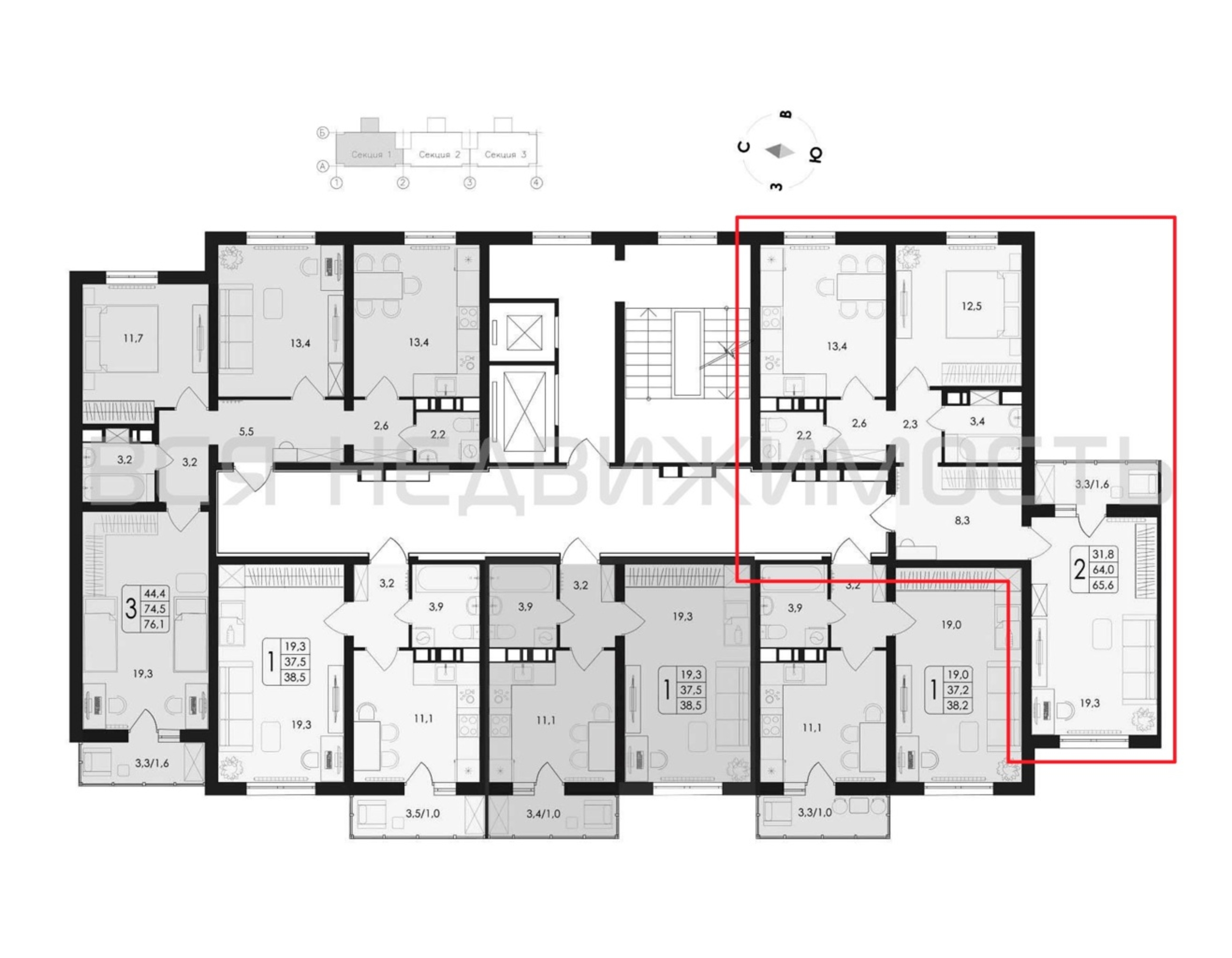 2-комнатная квартира, 65.60 м² 10/10 этаж ID объекта 100099934