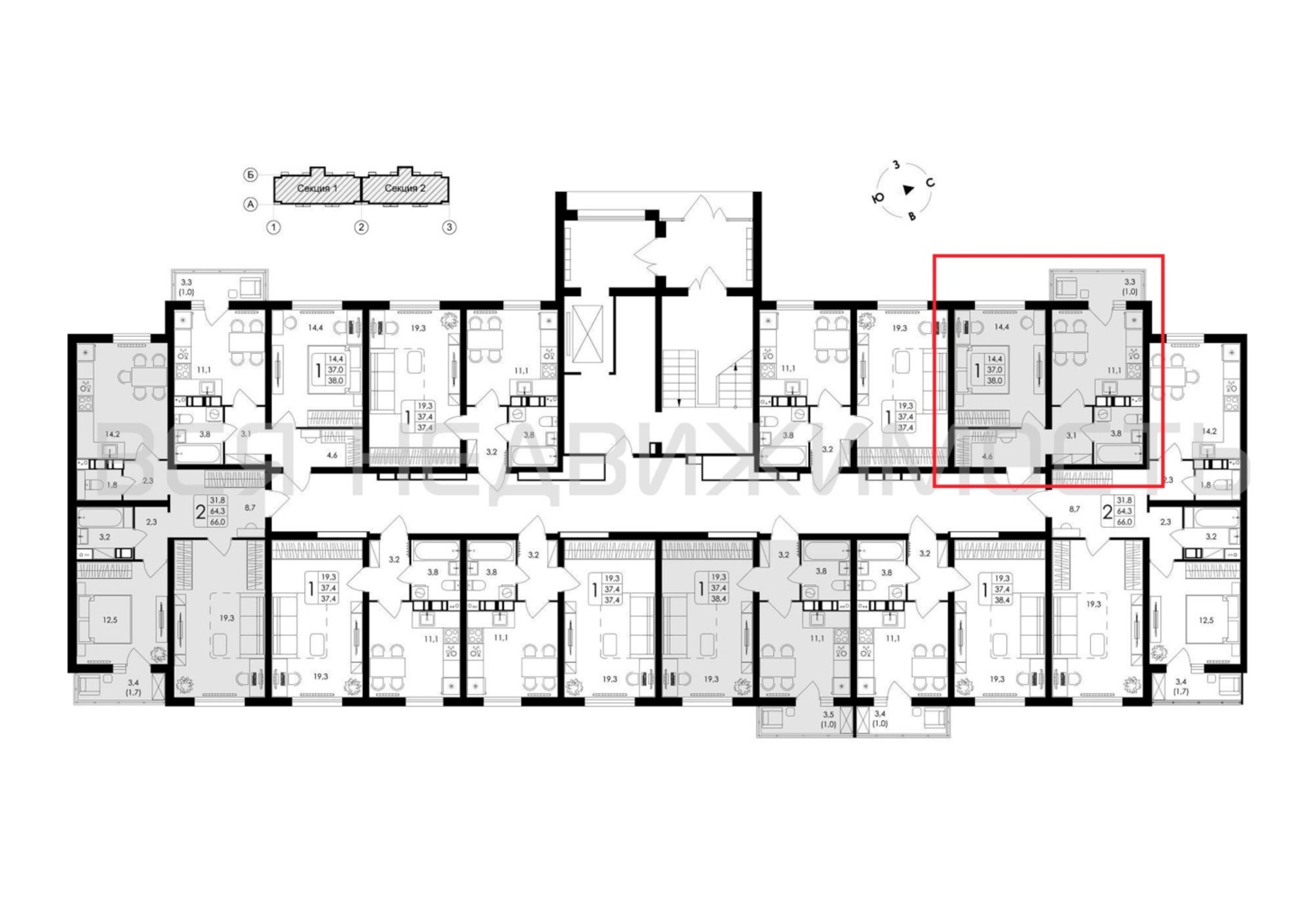 1-комнатная квартира, 38.00 м² 1/7 этаж ID объекта 100100012