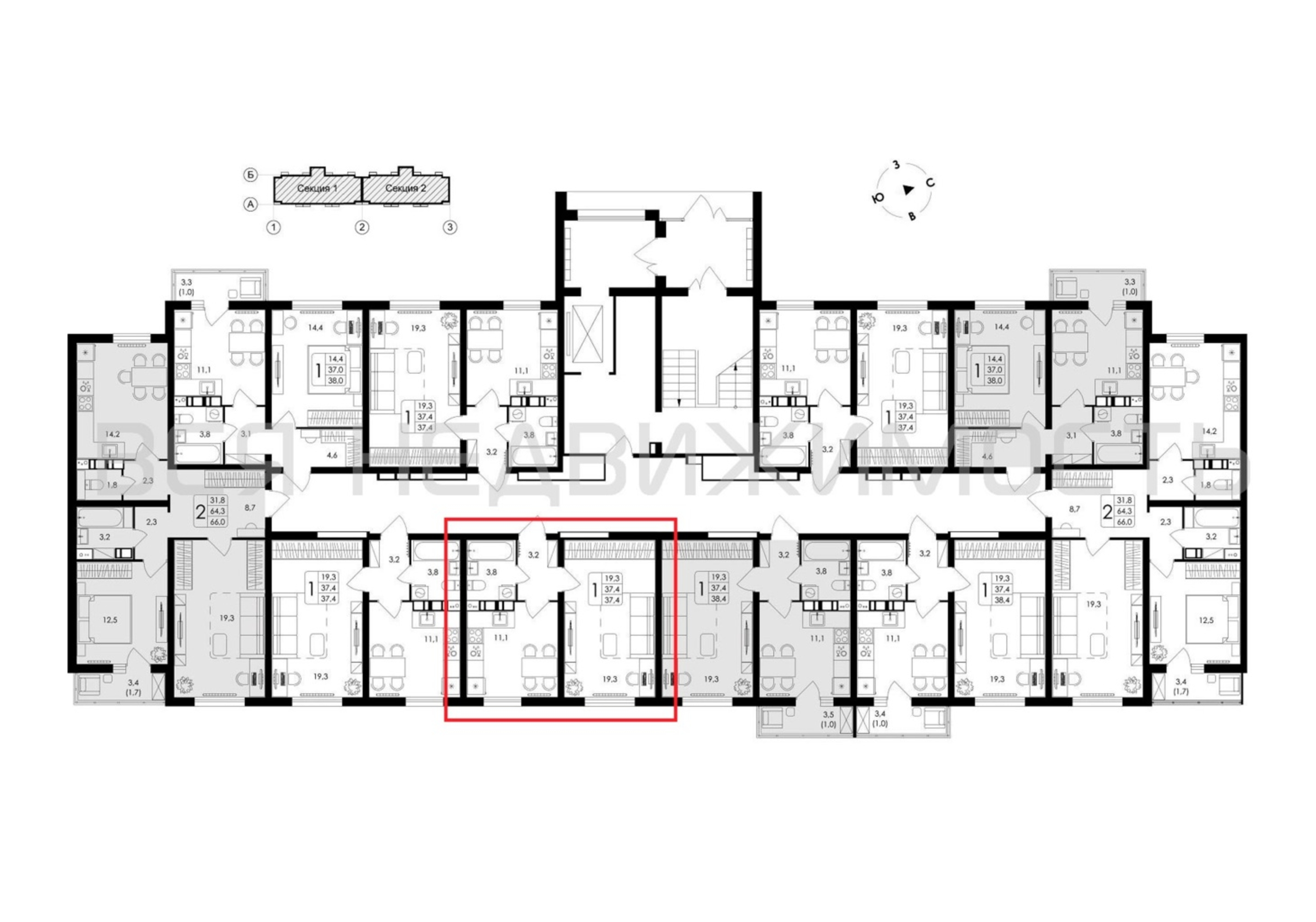 1-комнатная квартира, 37.40 м² 1/7 этаж ID объекта 100100016