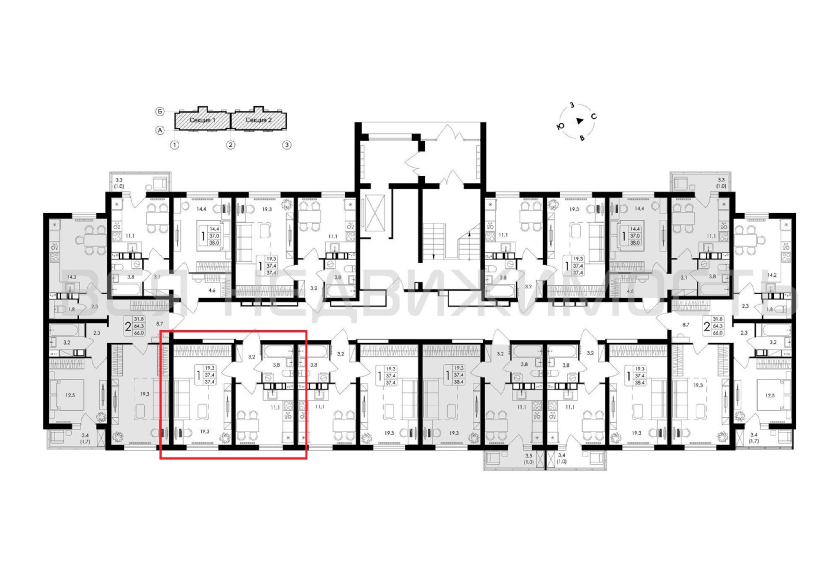 1-комнатная квартира, 37.40 м² 1/7 этаж ID объекта 100100017