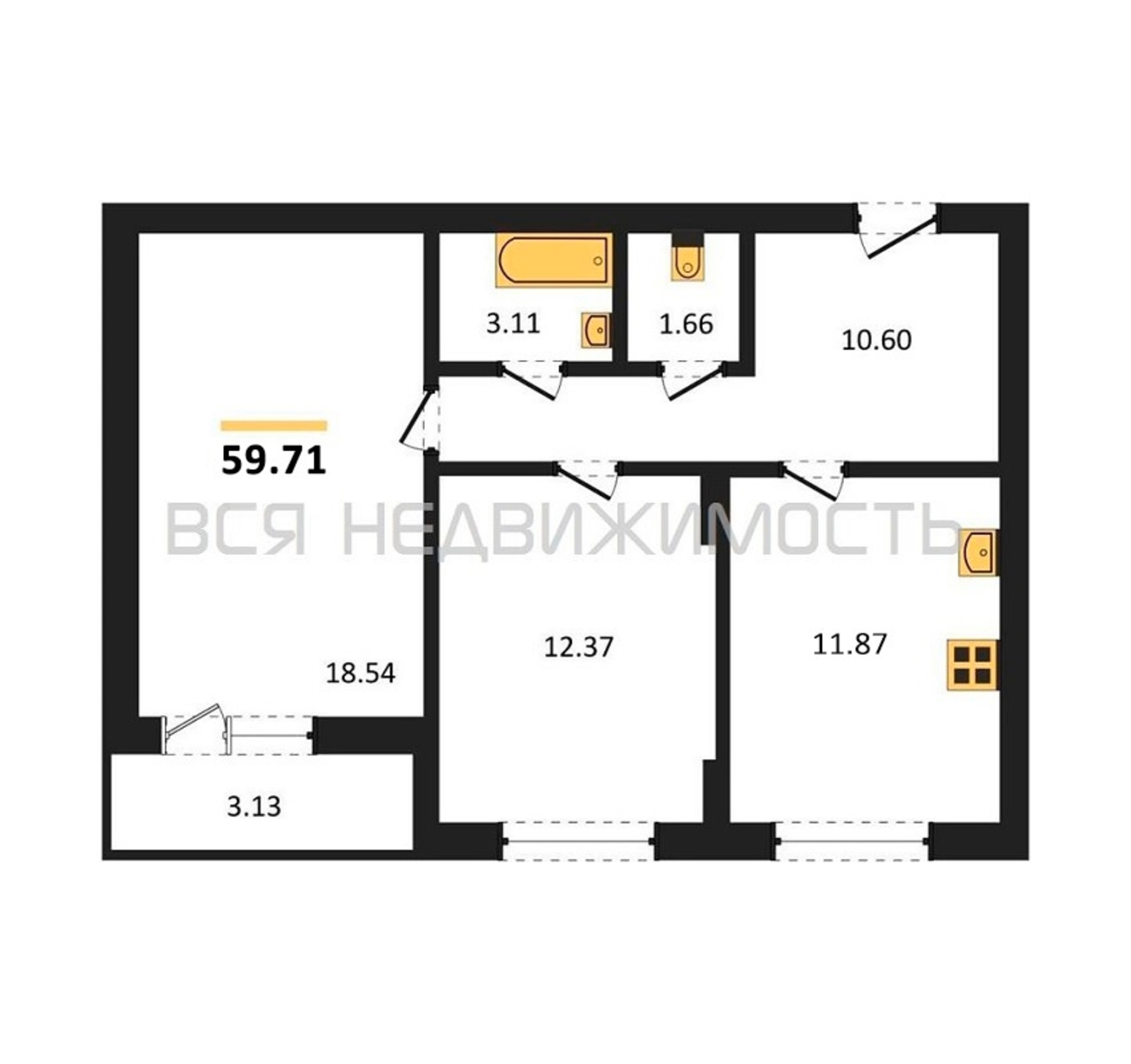 2-комнатная квартира, 59.71 м² 15/17 этаж ID объекта 100100161