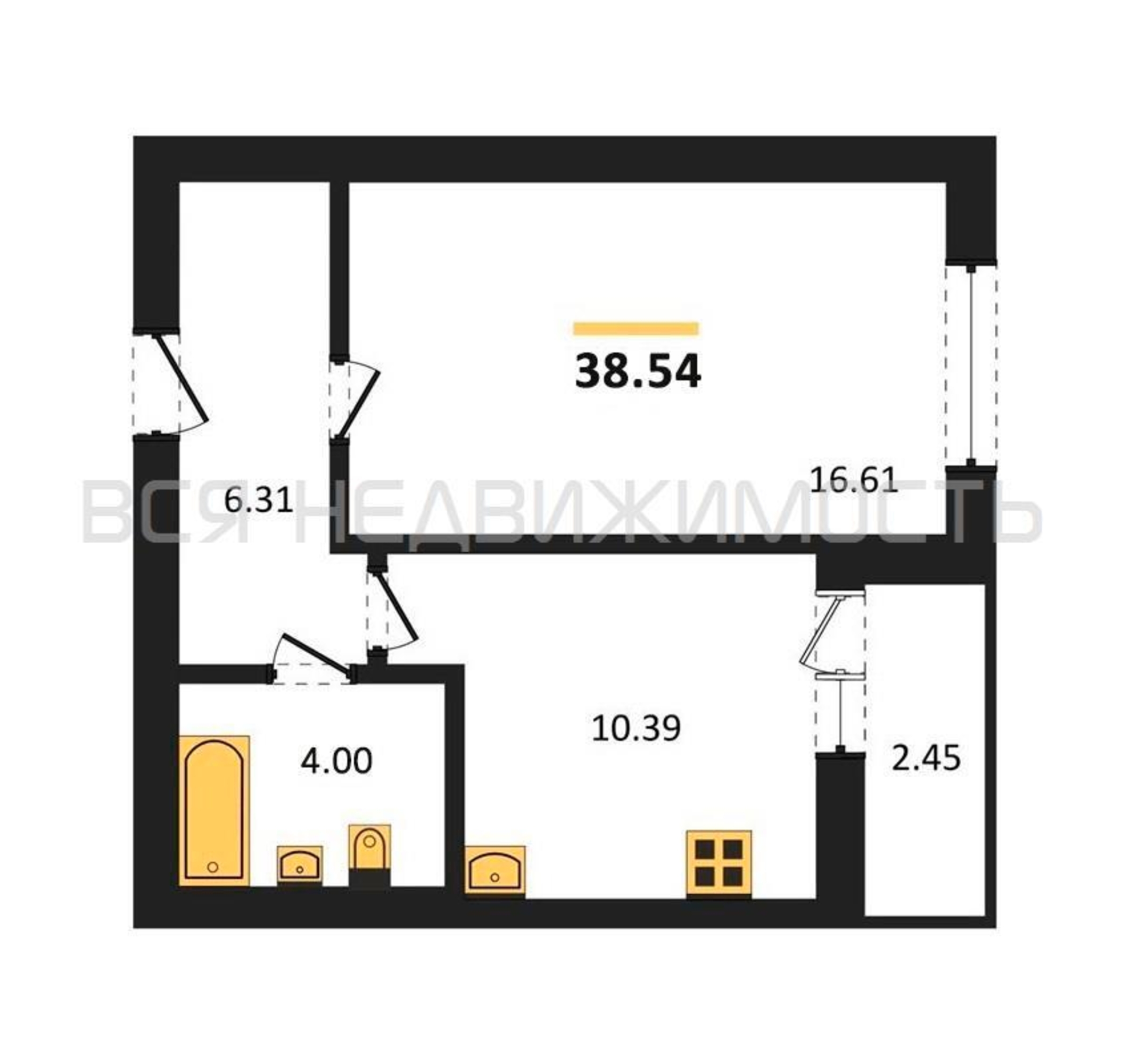 1-комнатная квартира, 38.54 м² 7/17 этаж ID объекта 100100218