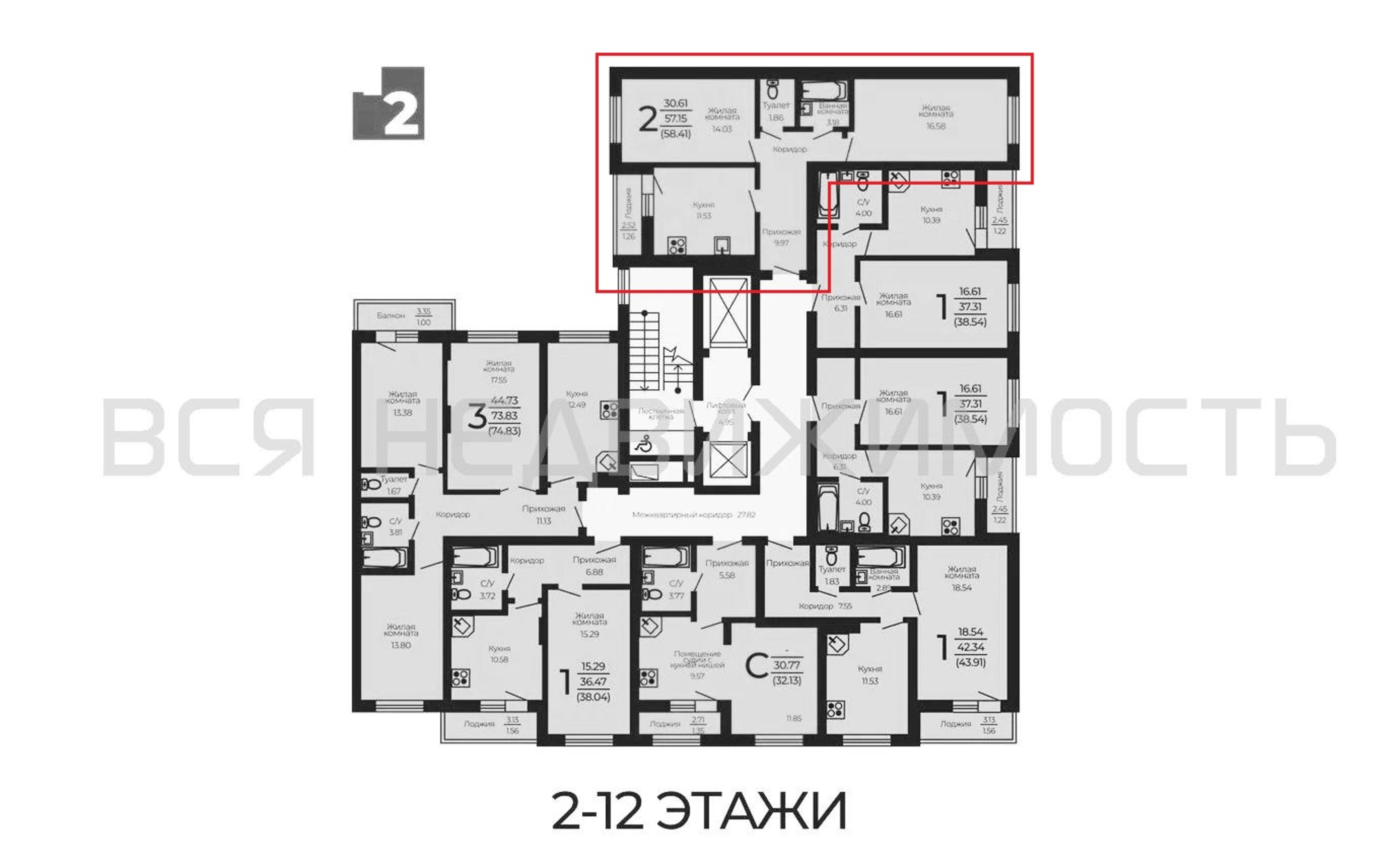 2-комнатная квартира, 58.41 м² 12/17 этаж ID объекта 100100250