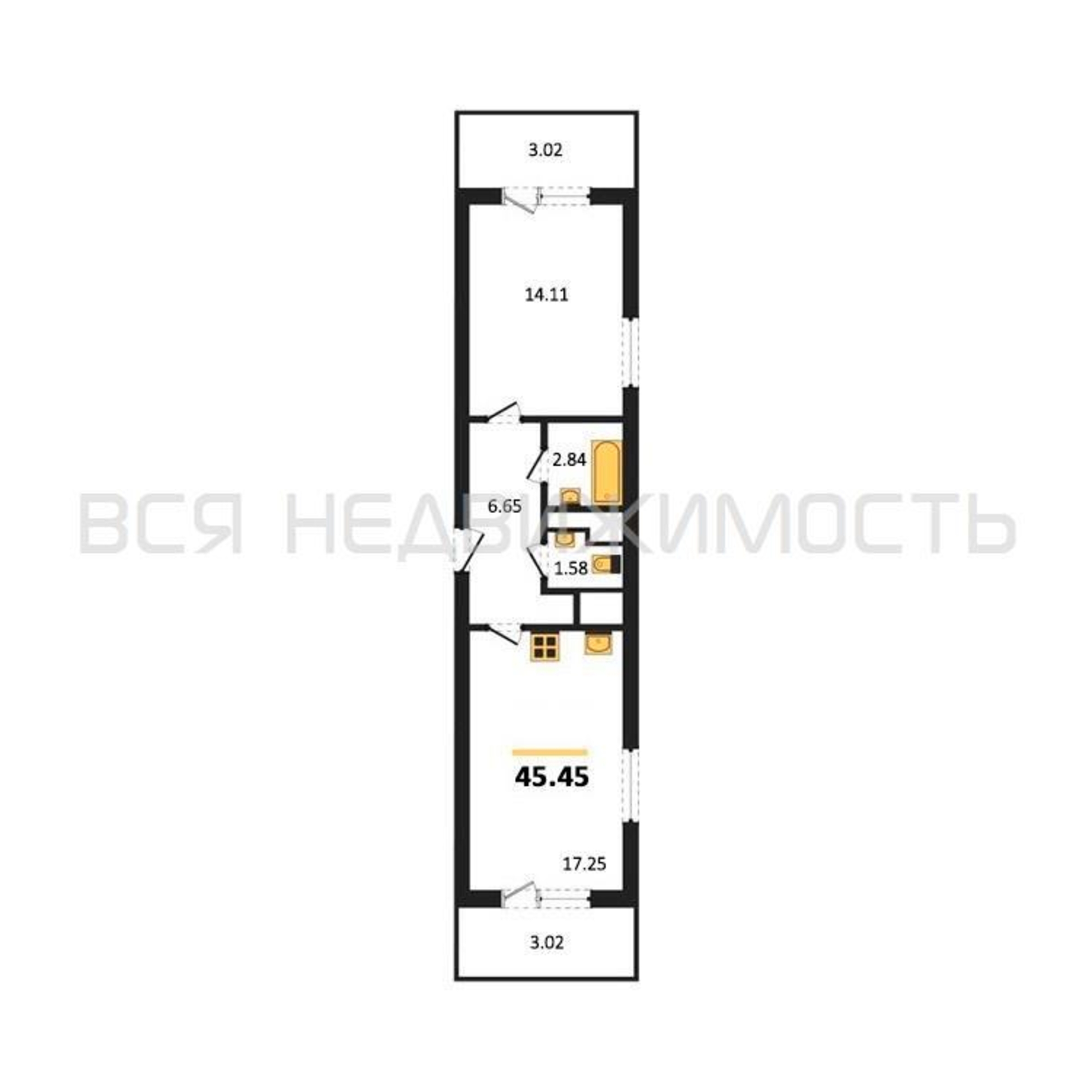 Общая площадь42.43 м²